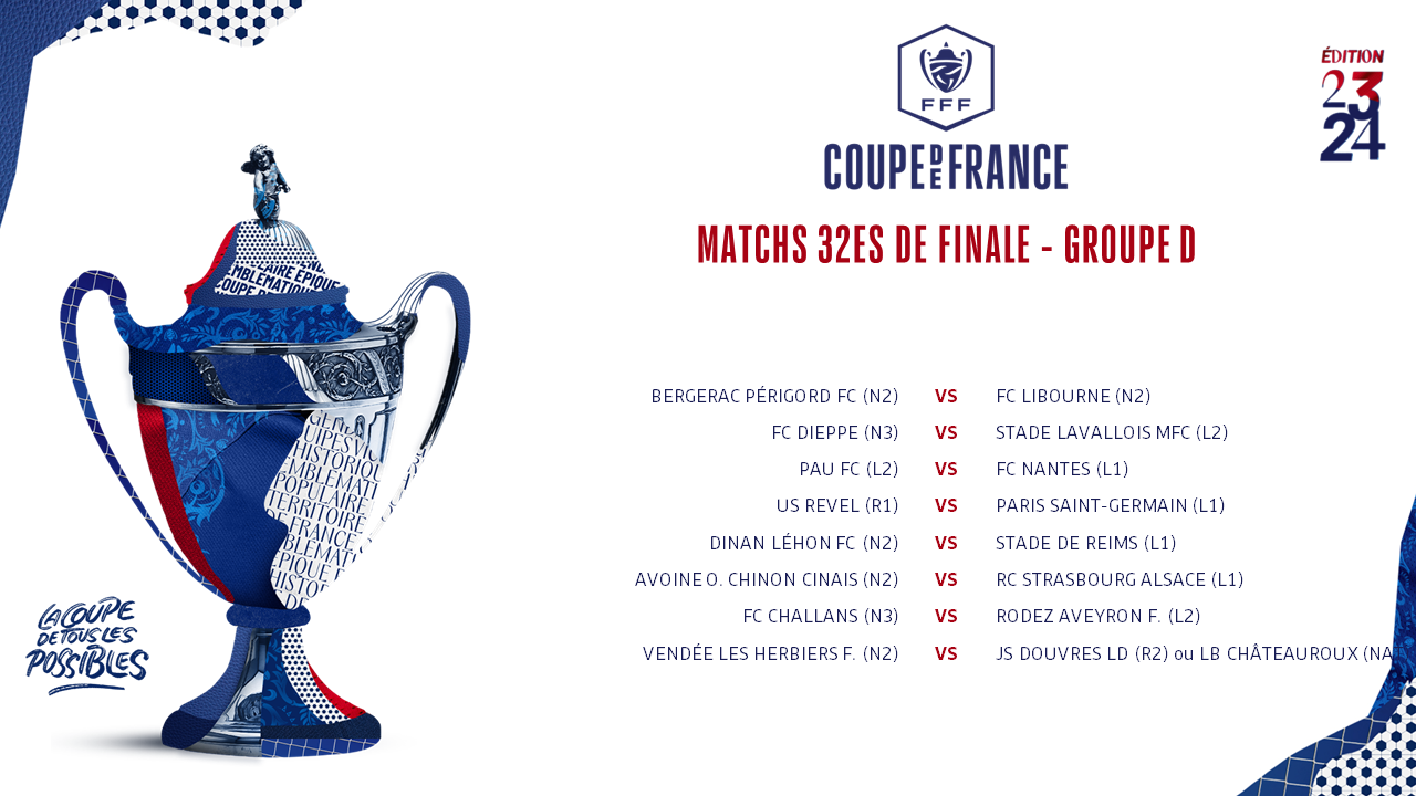 Les amoureux de la Coupe de France ont probablement déjà hâte d'être au week-end des 6-7 janvier prochain pour assister aux 32es de finale de l'édition 2023-2024 et à l'entrée dans l'épreuve des dix-huit formations de Ligue 1 Uber Eats.