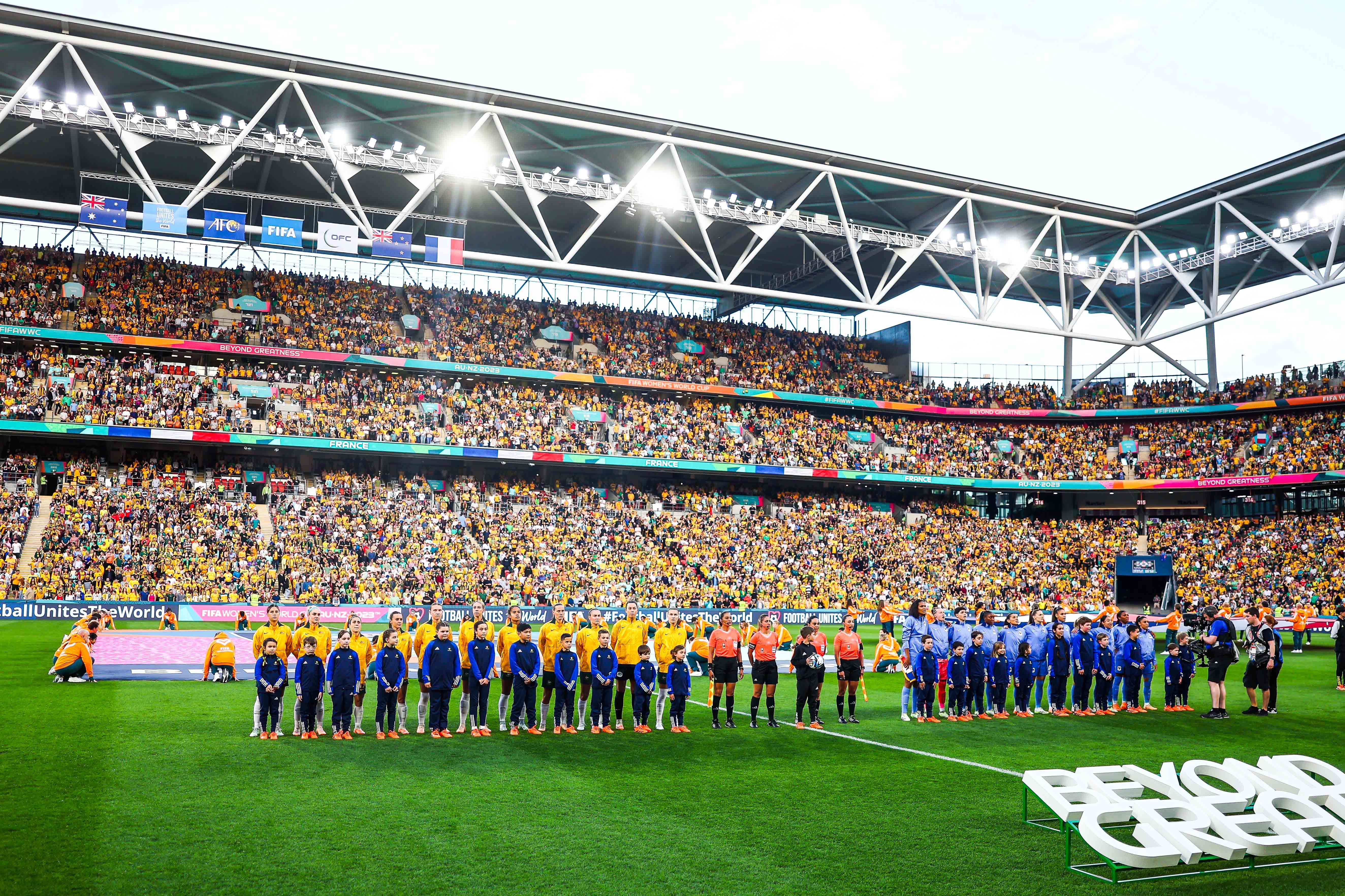 Samedi 12 août 2023, Brisbane : les Bleues avant leur quart de finale de Mondial face à l'Australie (photo SUSA / ICON SPORT).