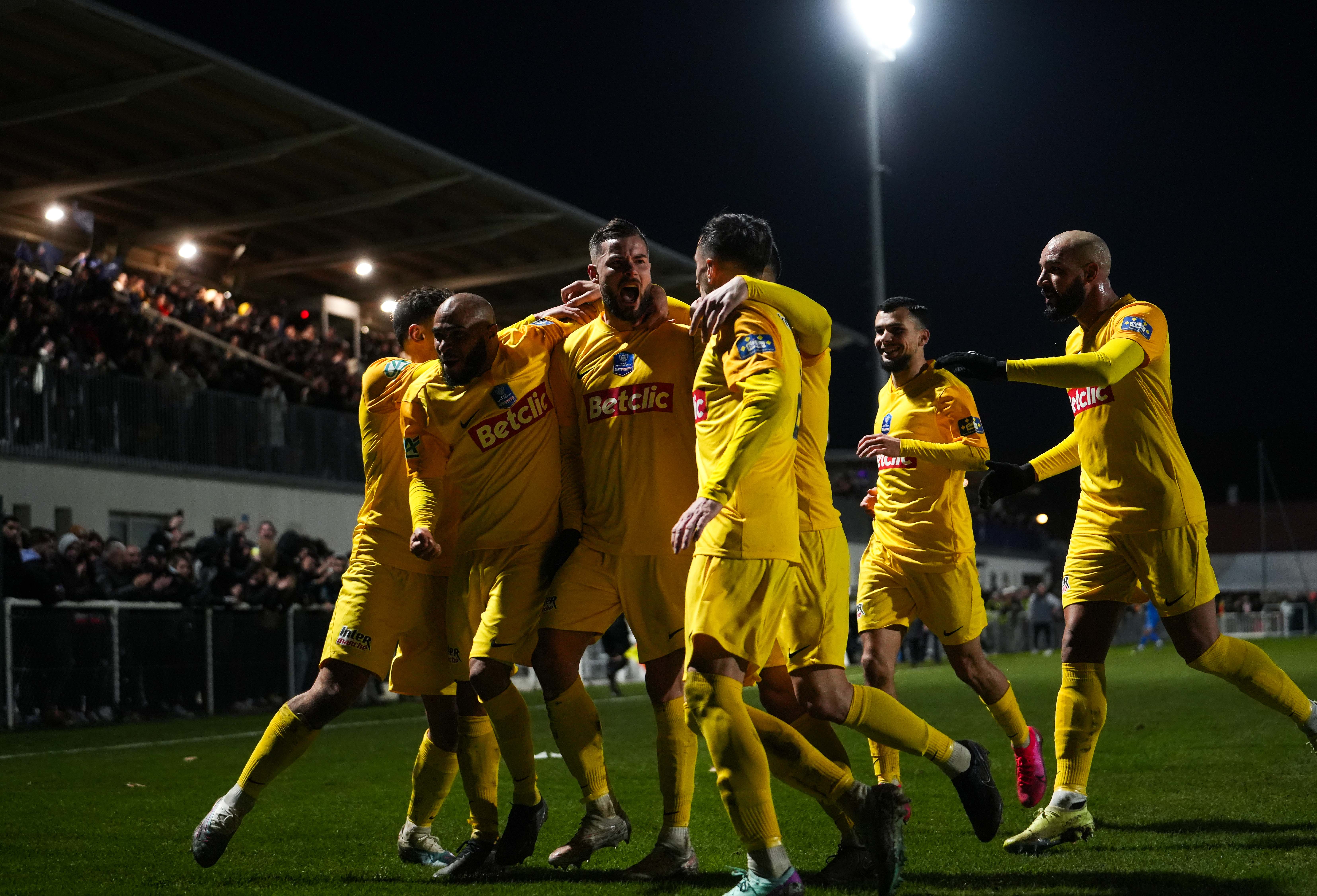 Le FC Sochaux-Montbéliard (photo ci-dessous) a gommé les deux divisions qui le séparent du Stade de Reims, qui avait pourtant ouvert le score par Emmanuel Agbadou (6e). Les Doubistes ont pris l’avantage grâce à Diego Michel (21e) et un penalty converti par Alex Daho (45e), avant d’être rejoints par le doublé d’Agbadou (82e). Et de se montrer plus solides aux tirs au but, leur gardien Mathieu Patouillet sortant la tentative de Joseph Okumu (2-2, 5 tab 4).