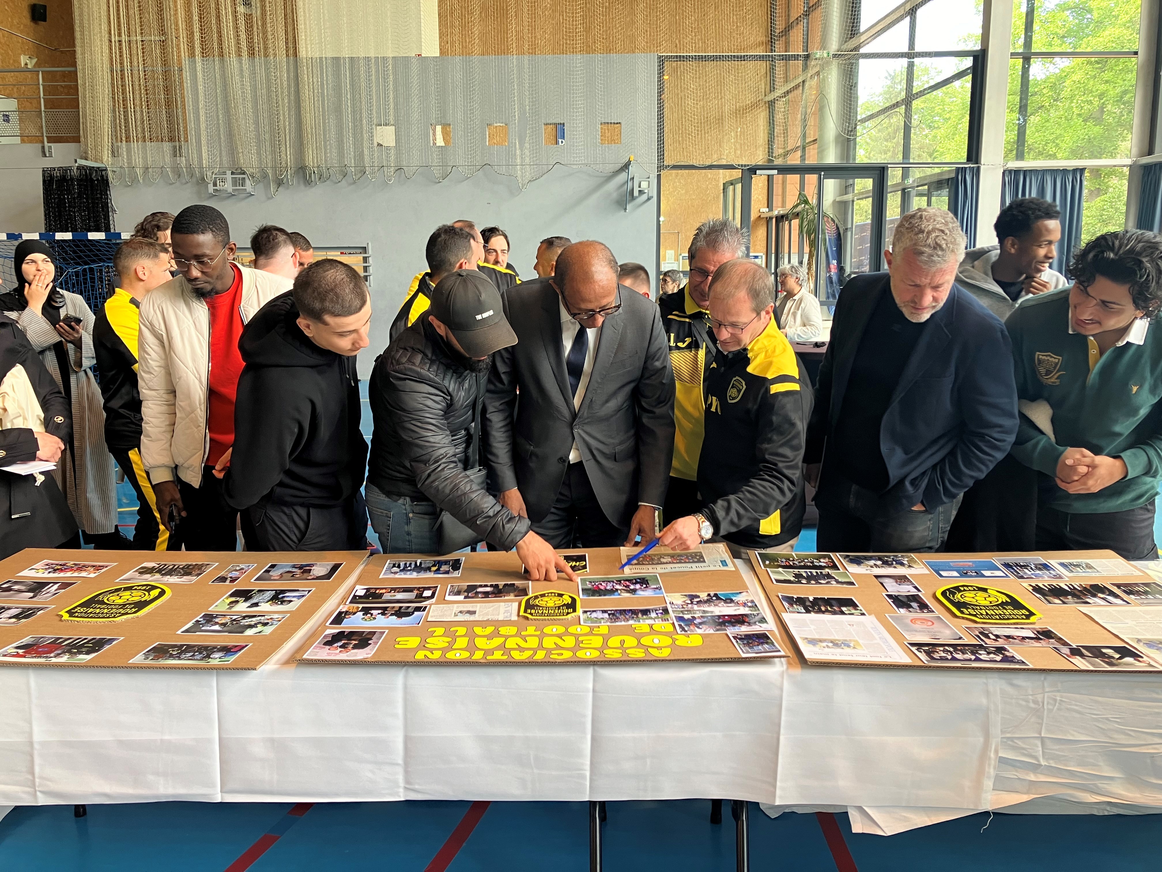 C'est « l'engagement exemplaire » du club normand dans ce domaine particulier que Philippe Diallo, président de la FFF, et Jacques Bungert, président du Fondaction du Football, sont ainsi venus saluer mardi matin au complexe sportif Saint-Exupéry de Rouen, en présence, notamment, de Sarah Vauzelle, maire-adjointe chargée des sports, Romain Feret, président du District de Seine-Maritime, Guillaume Naslin, délégué général du Fondaction, Amel Bouzoura, directrice de l'engagement de la FFF, ou encore Kirstie Abergel, directrice de la Ligue de Normandie.