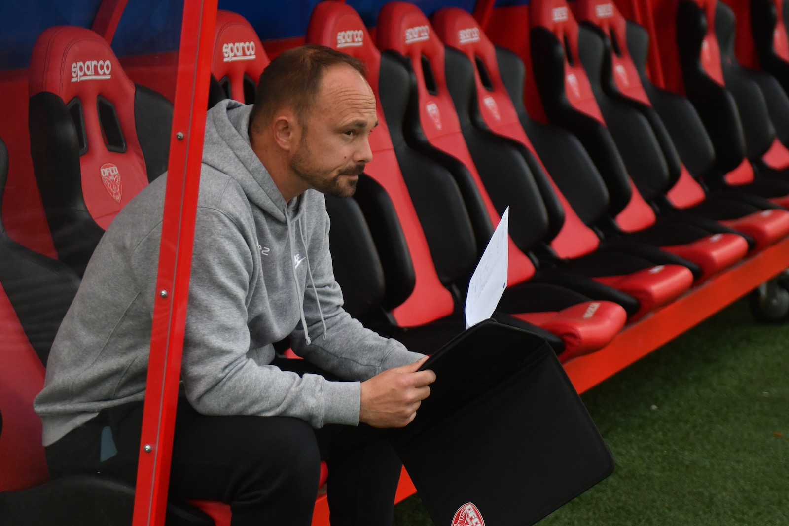 À 41 ans, Baptiste Ridira découvre le National sur le banc du DFCO (photo Philippe LE BRECH / APL/FFF).