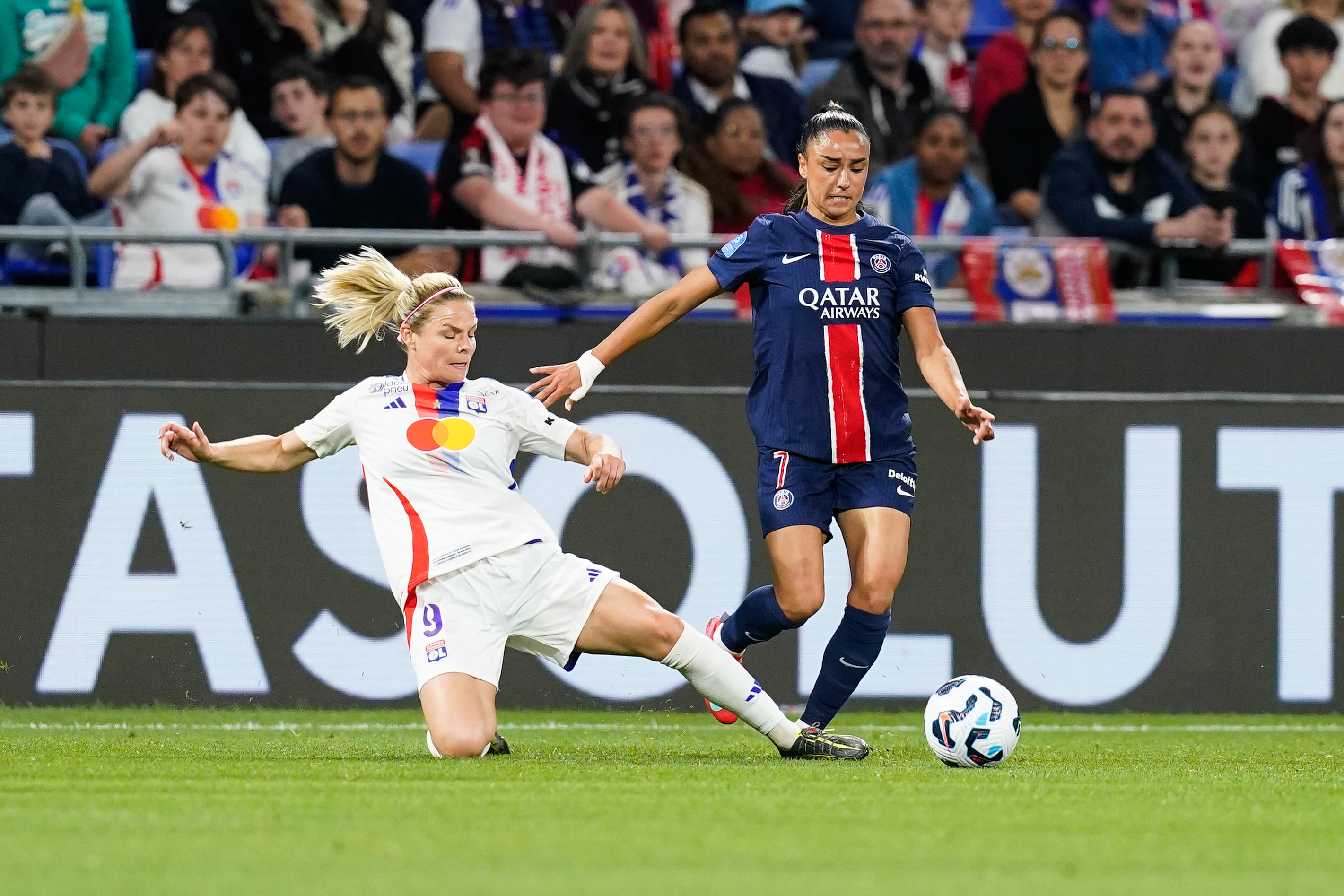Sous les yeux de Jean-Michel Aulas, président de la LFFP, et Laurent Bonadei, le sélectionneur de l’Équipe de France Féminine, Kadidiatou Diani, qui a testé Mary Earps d’entrée (4e), n’a pas été loin d’assommer cette finale engagée et serrée avant le repos, sur un bon service d’Eugénie Le Sommer (45e+5).