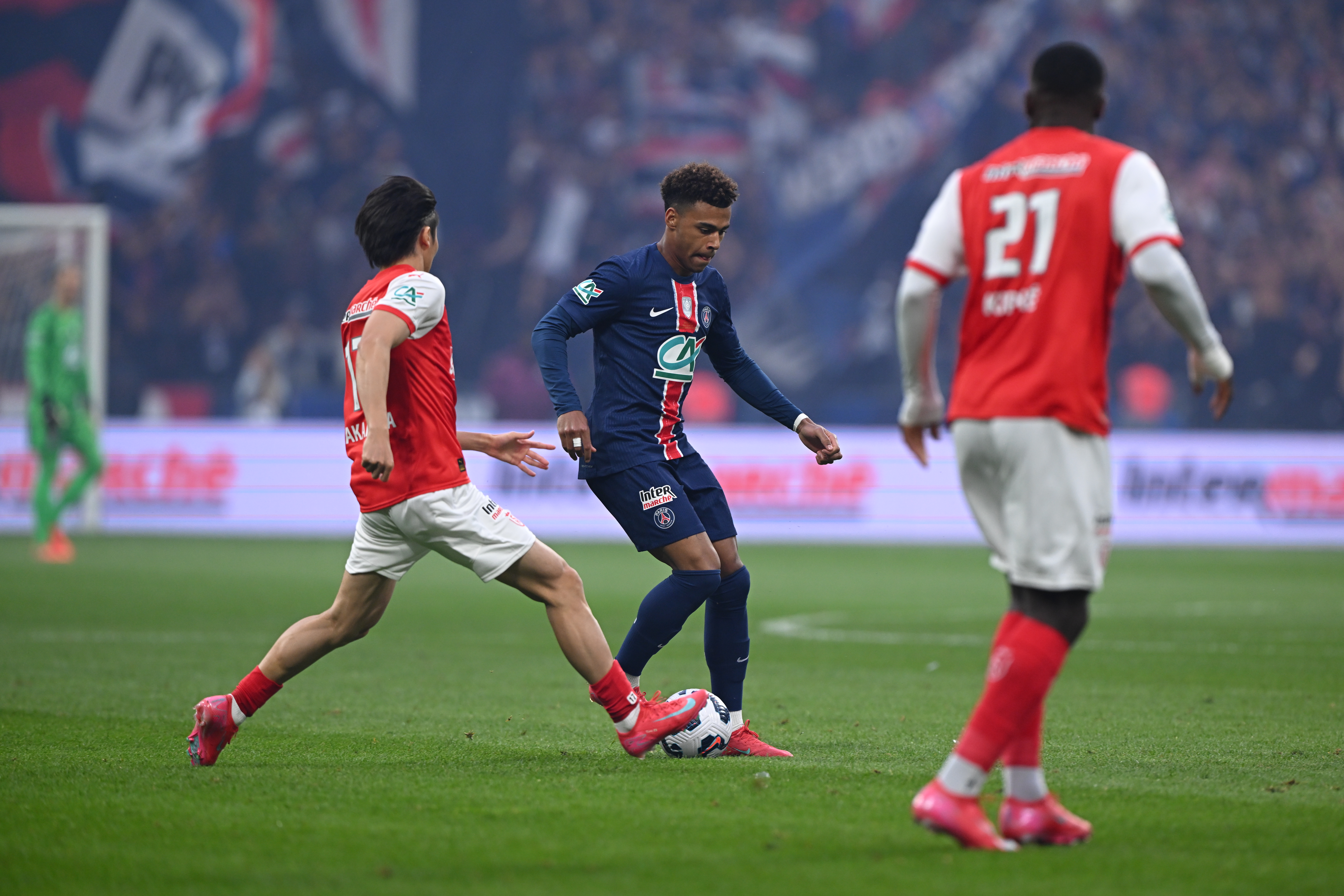 Il n'a fallu que dix-neuf minutes au Paris SG pour mettre déjà une main sur cette Coupe de France 2025. Le temps pour Bradley Barcola de réaliser un doublé, aux 16es et 19es minutes. Les deux fois servi par le même Désiré Doué, qui avait remplacé Kvaratskhelia juste avant le coup d'envoi. Dès lors, et même si Amadou Koné avait signé le premier tir cadré de la partie, obligeant Safonov à se coucher (5e), on ne voyait plus guère comment les Rémois allaient pouvoir se sortir de l'emprise parisienne et inverser le cours de l'histoire. Loin de ça, ils ont continué à subir et ce troisième but qui les menaçait à chaque offensive du PSG a fini par leur tomber dessus, Achraf Hakimi mettant fin à la fois à leurs espoirs et à tout suspense juste avant la pause (3-0, 43e).