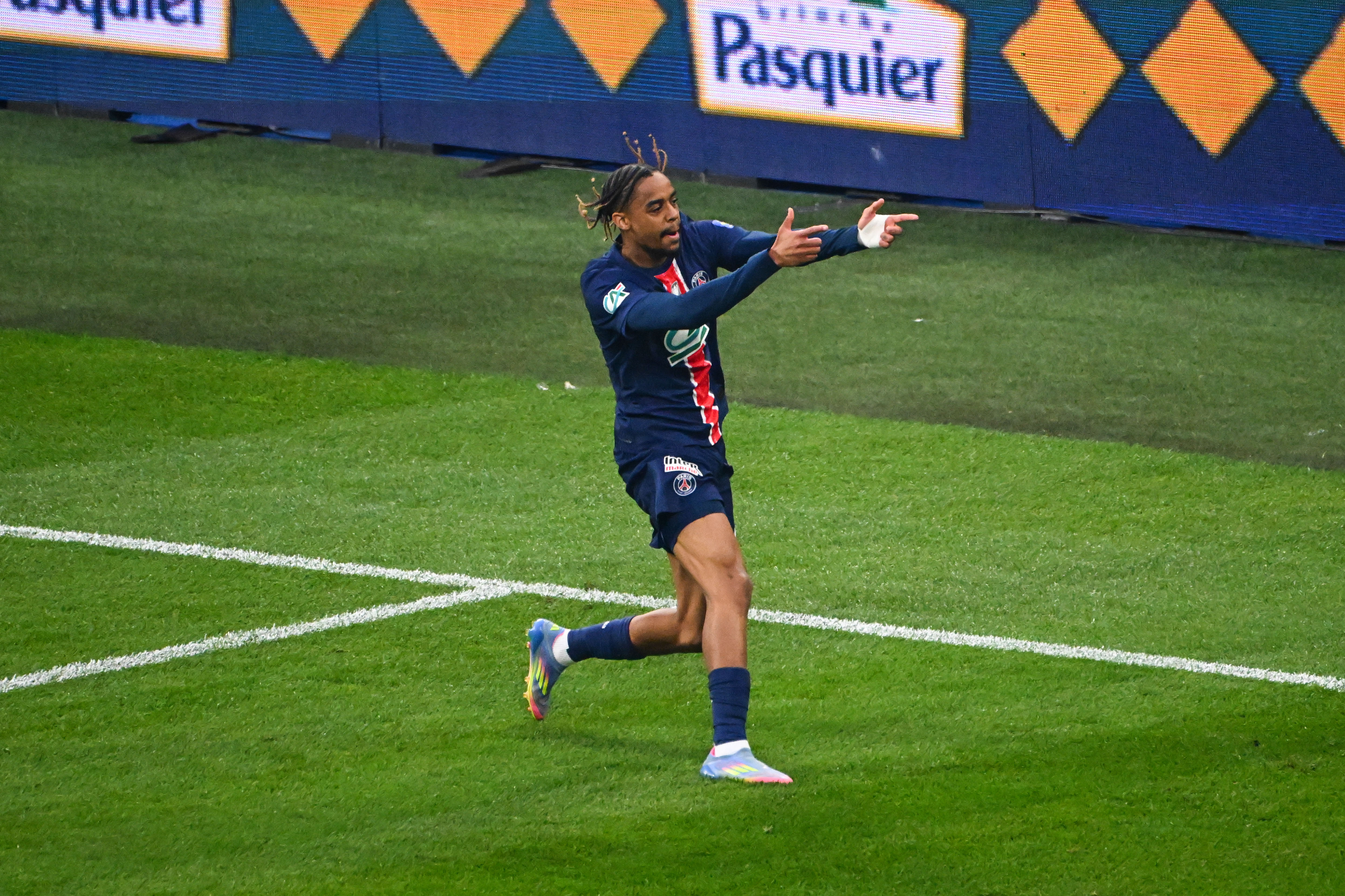 - 2-0, Bradley Barcola (19e) : sur une attaque placée, Marquinhos, aux trente mètres, trouve une solution de passe vers Doué sur la droite. Le jeune parisien rentre dans la surface et délivre un centre parfait devant le but pour Bradley Barcola dont la reprise ne laisse aucune chance à Yehvann Diouf.