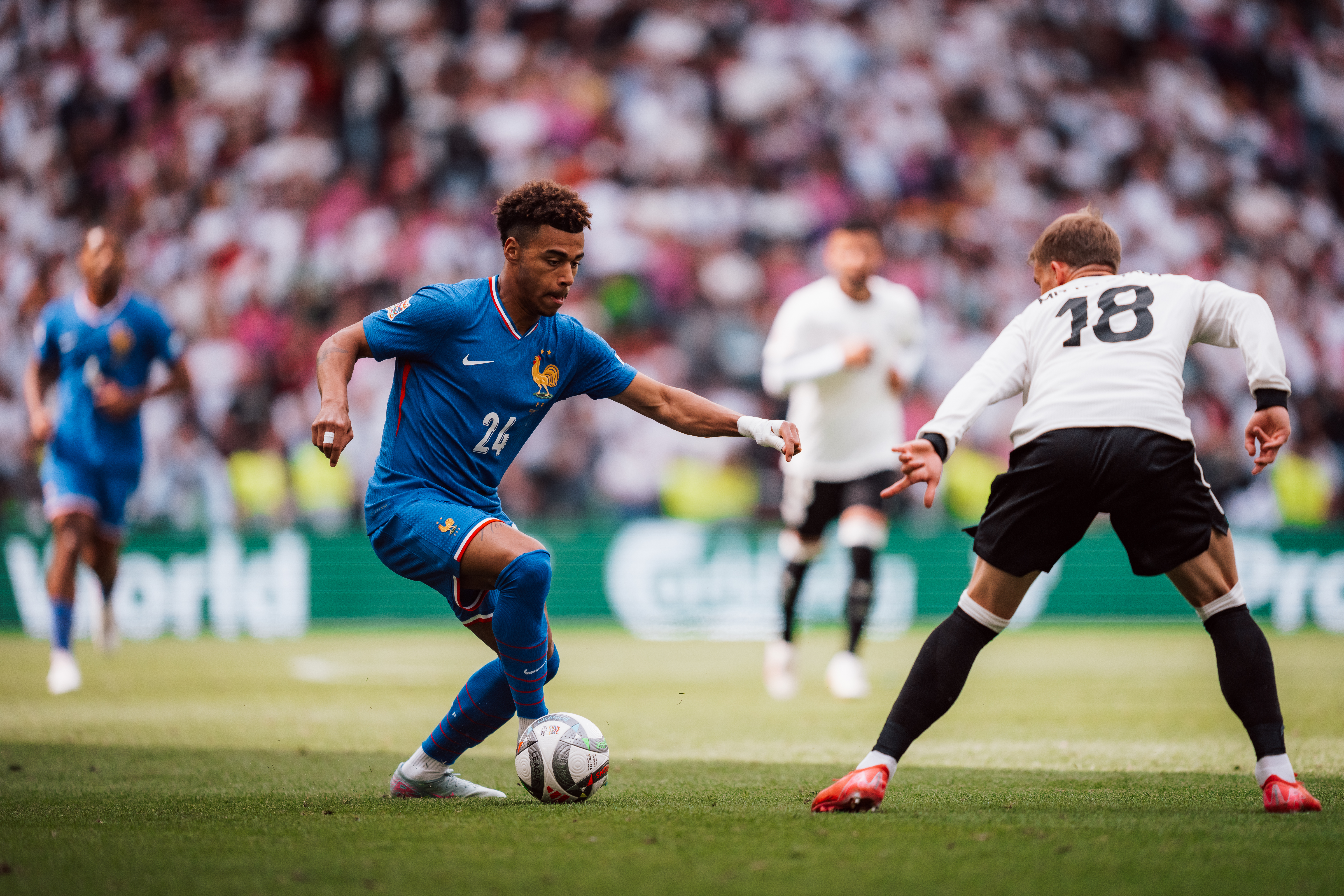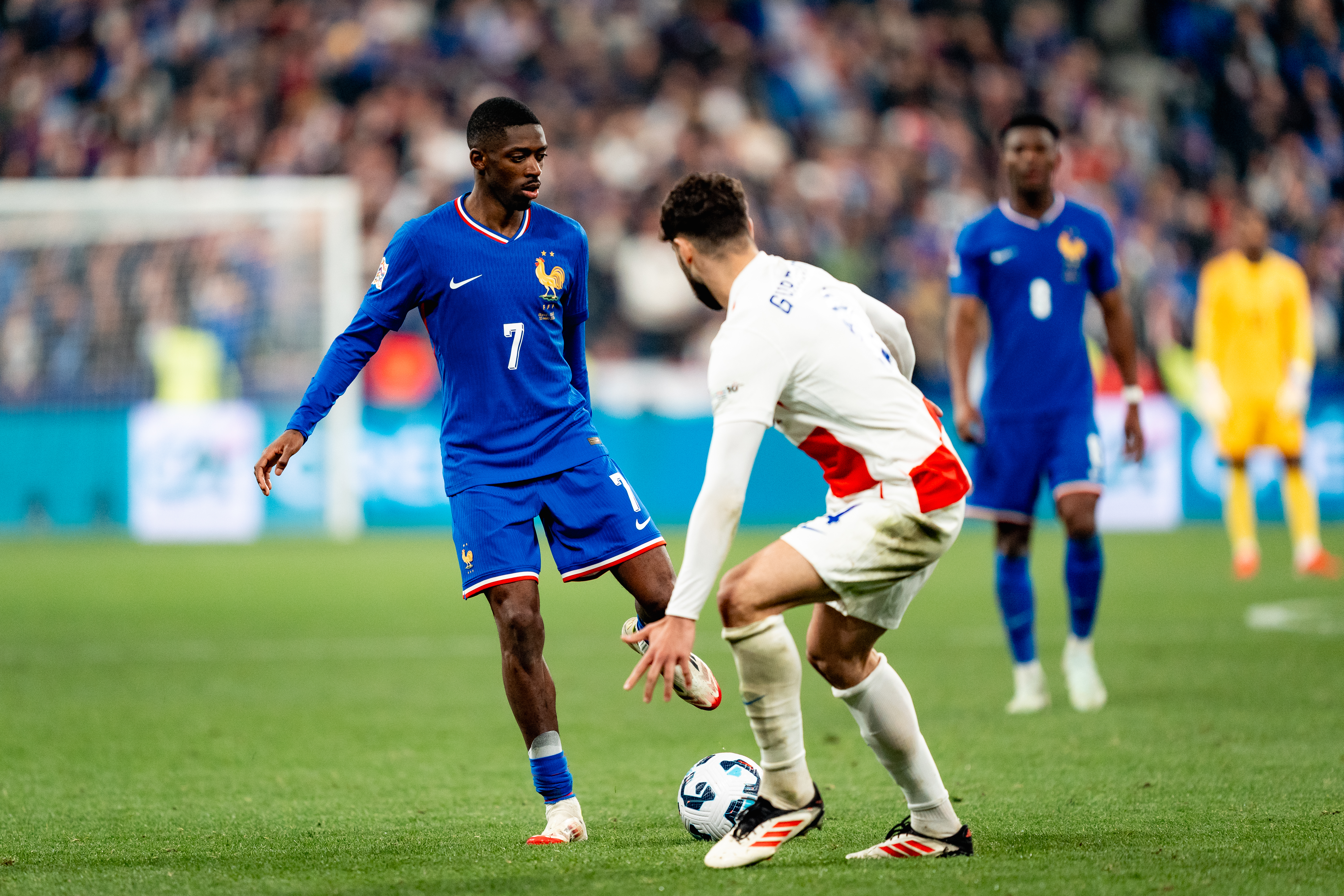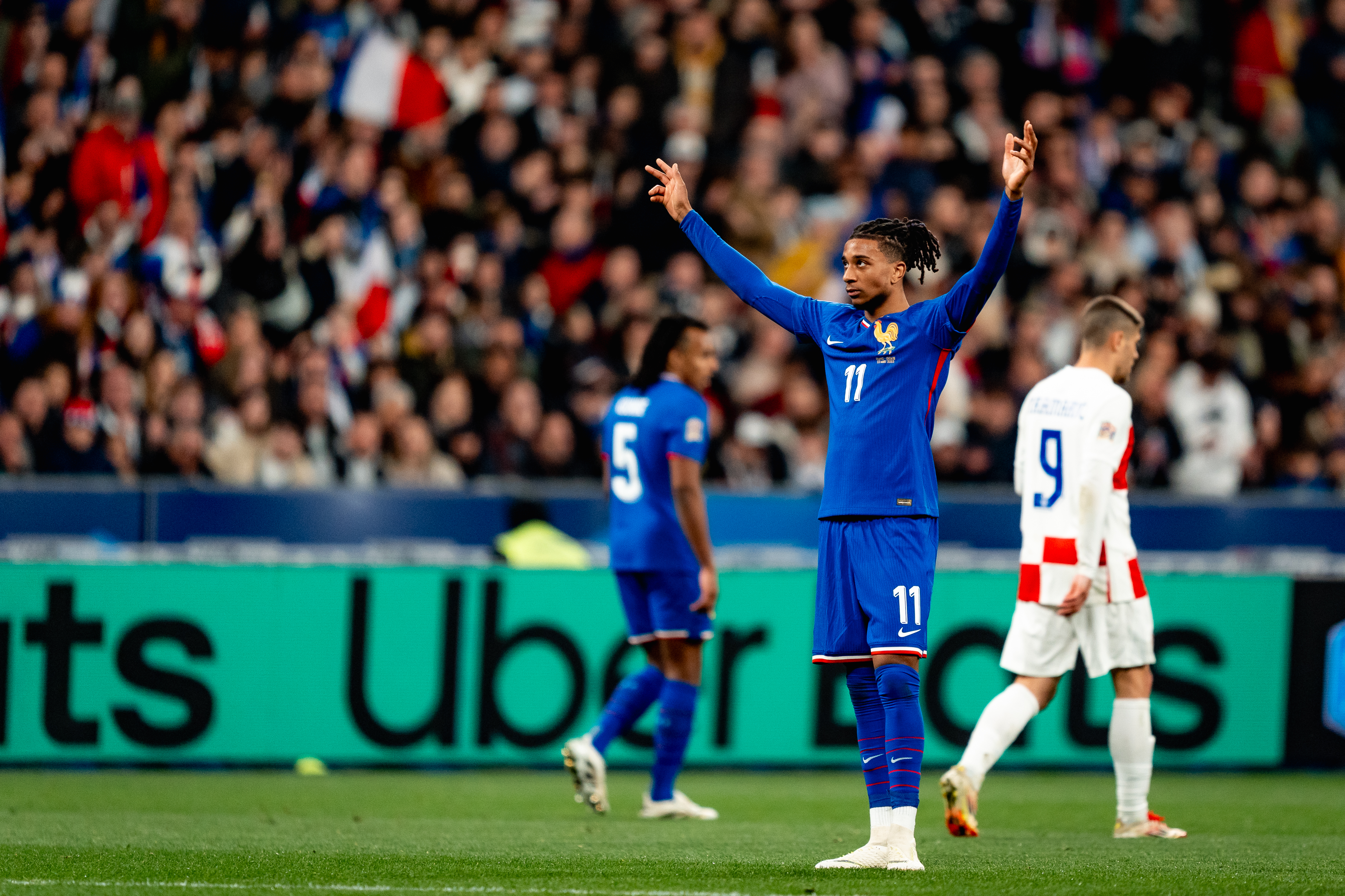 Après une aventure olympique remarquée à Paris et une médaille d’argent, Michael Olise a découvert à la rentrée l’Équipe de France A. Appelé par Didier Deschamps, le gaucher a fêté sa première sélection contre l’Italie (1-3, le 6 septembre 2024) en Ligue des Nations. Une compétition dans laquelle il a marqué son premier but avec les Bleus d’un splendide coup franc face à la Croatie (2-0, 5-4 aux t.a.b.) en mars dernier, avant un deuxième lors de la petite finale contre l’Allemagne (0-2) en juin.