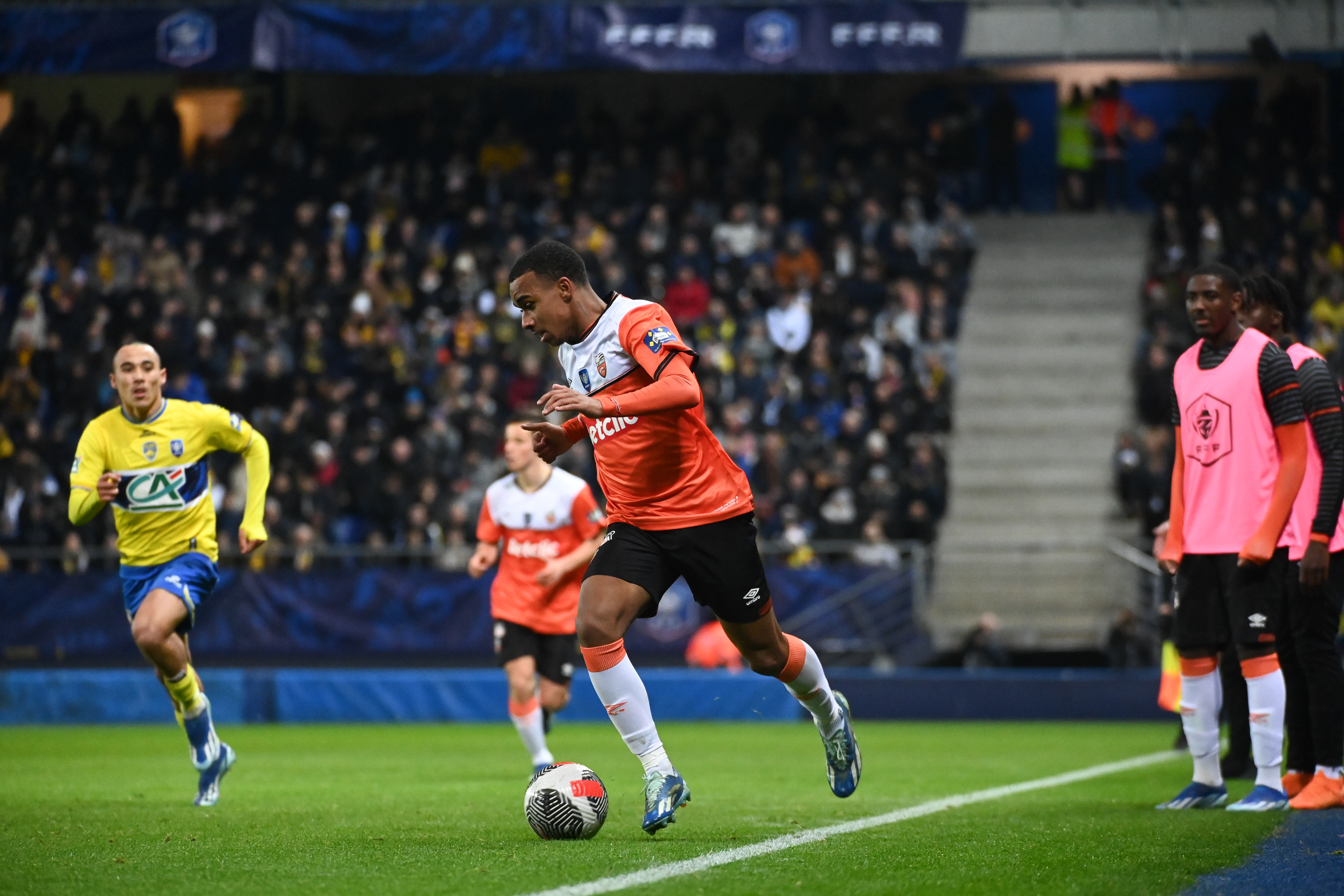 Éli Junior Kroupi sous le maillot lorientais (Pauline CARRÉ / APL / FFF).