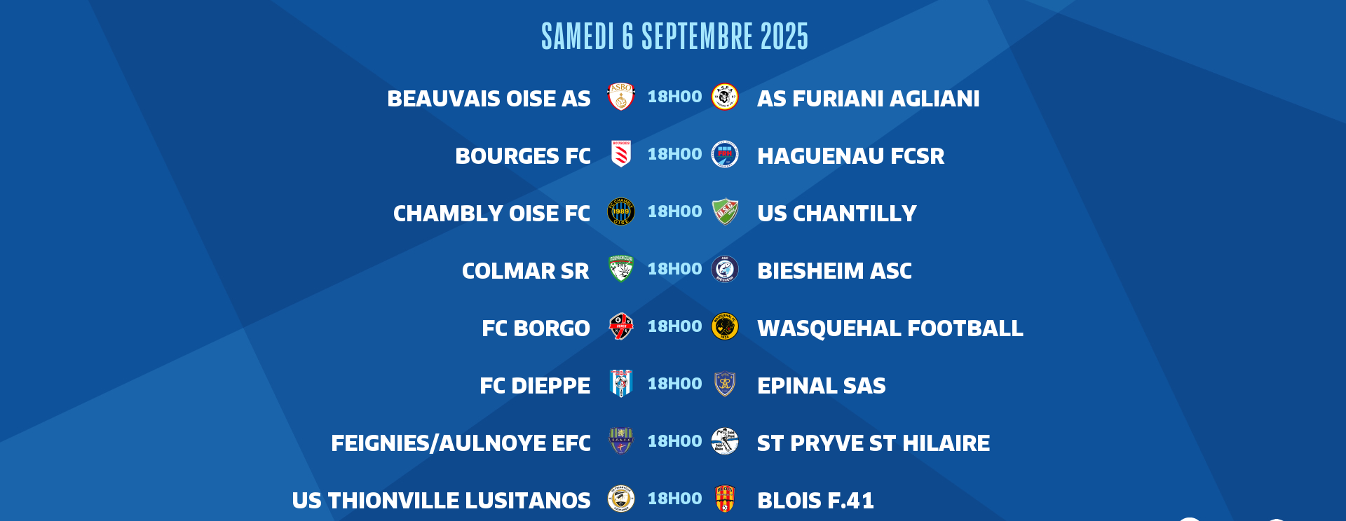 Suite et fin de la 4e journée de National 2 samedi avec des matches à 17h00, 18h00 et 19h00.