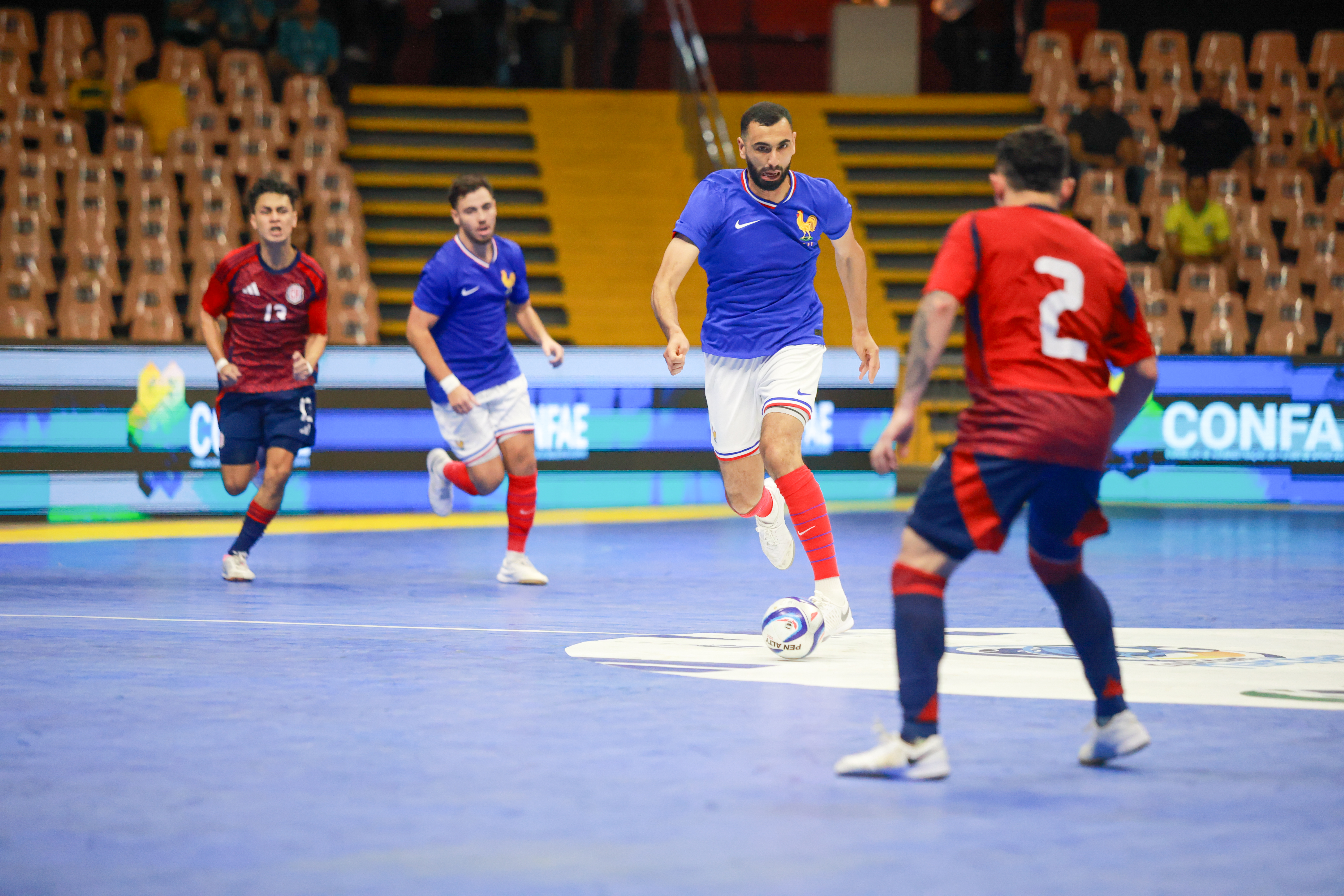 Mohammed, le meilleur buteur de l’histoire des Bleus, délivrait une nouvelle offrande, pour le triplé de Mouhoudine (5-3, 33e). Louis Marquet détournait autoritairement un coup franc à dix mètres avant que le Costa Rica ne s’offre un ultime espoir en fin de match (5-4, 39e).