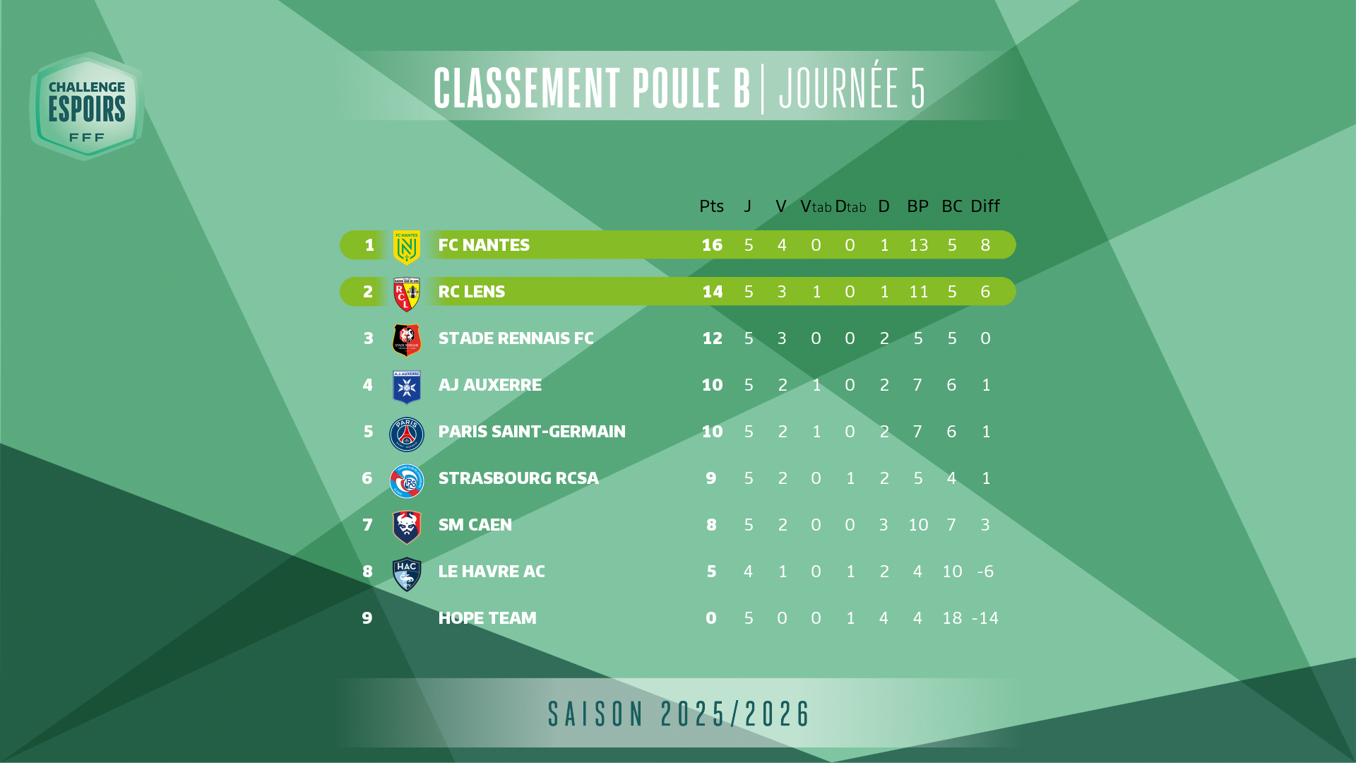 - FC Nantes - Hope Team 3-0 (par penalité)