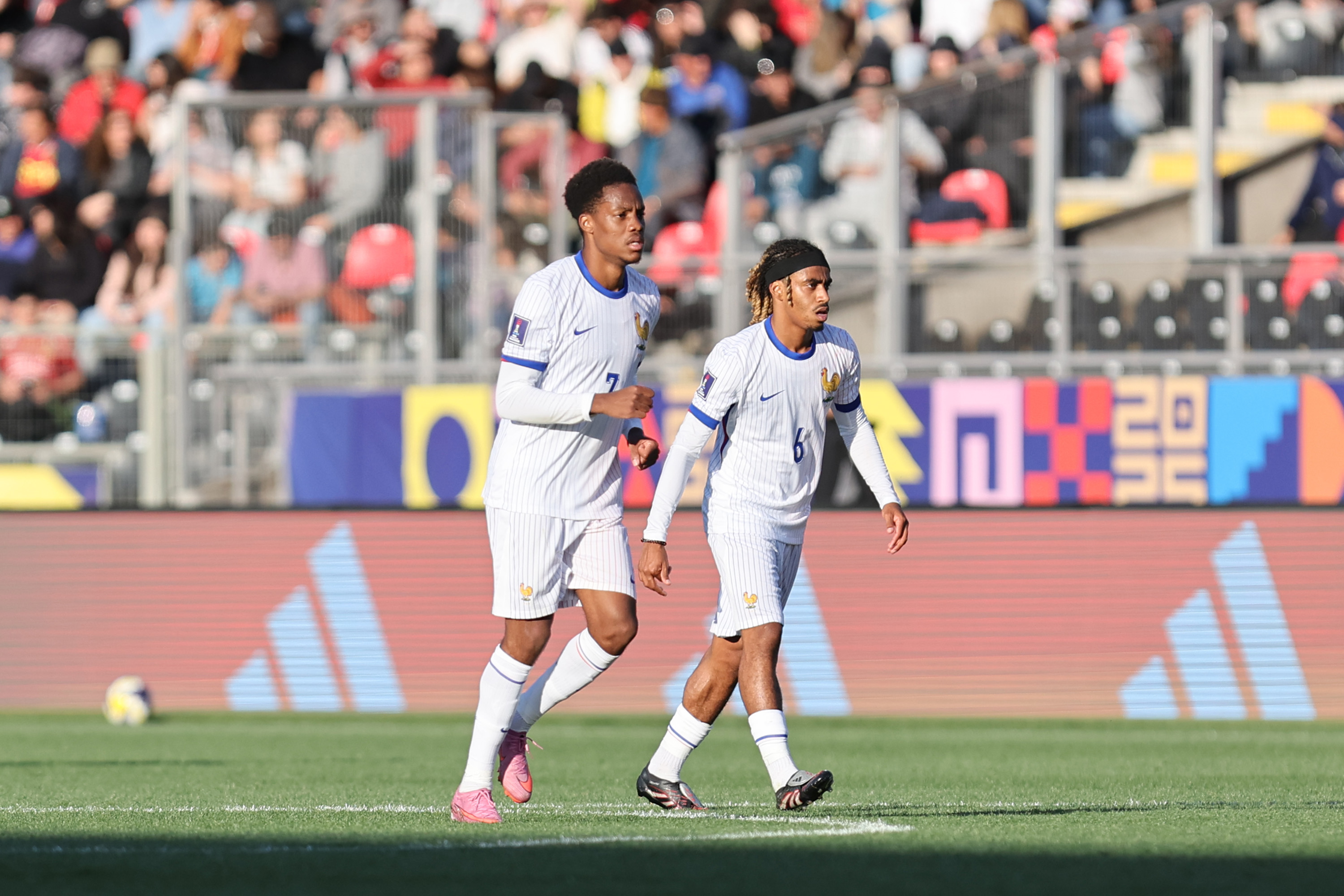 Andréa Le Borgne devant son passeur décisif Gabin Bernardeau, au centre (photo Ricardo MOREIRA / FIFA via Getty Images).