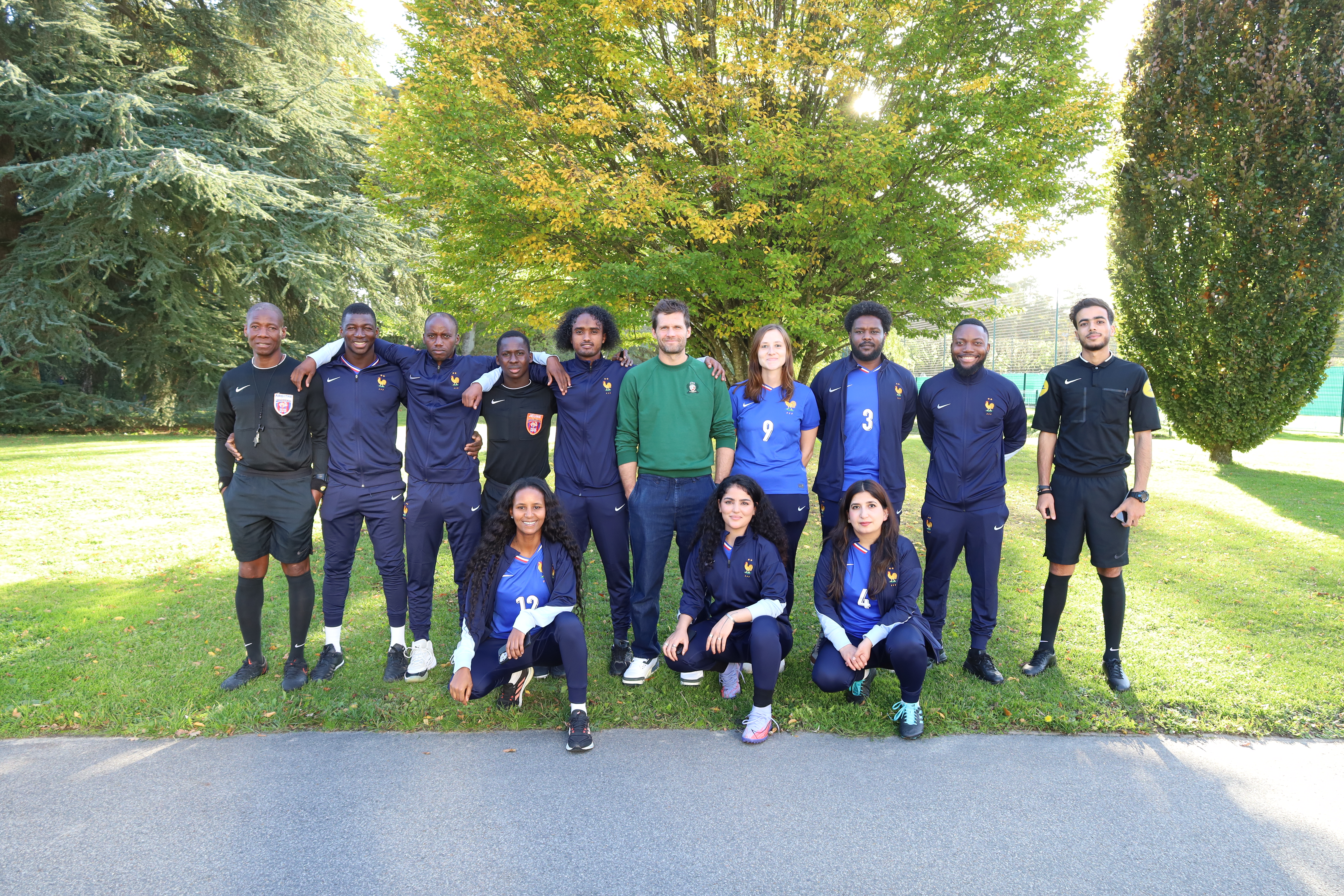 Alexis Michalik et la sélection inclusive française au CNF Clairefontaine le mardi 7 octobre (photo Archives FFF).