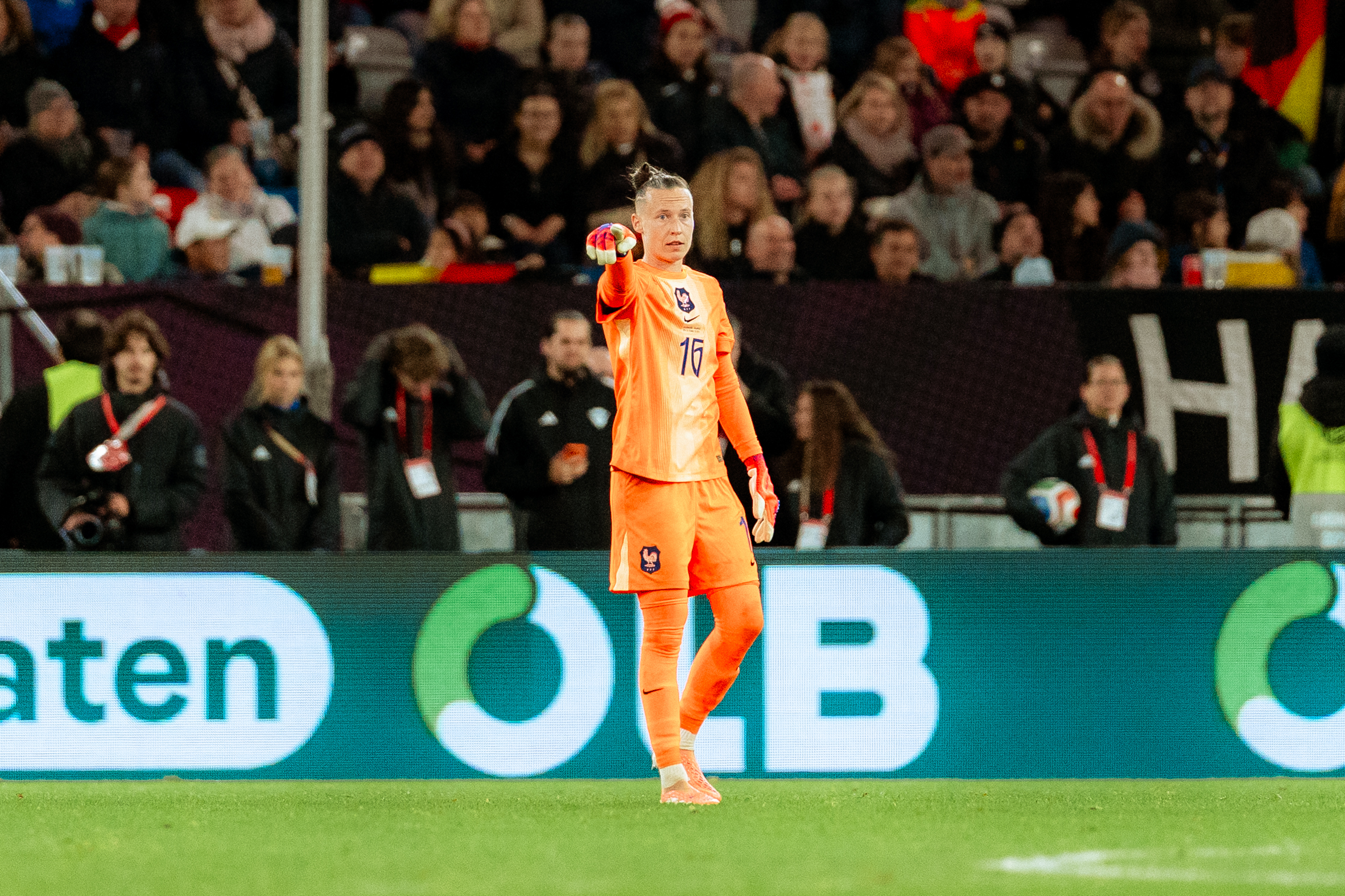 Pauline Peyraud-Magnin a réalisé six arrêts lors du match aller en Allemagne, vendredi (photo Zoé JEULIN / FFF).