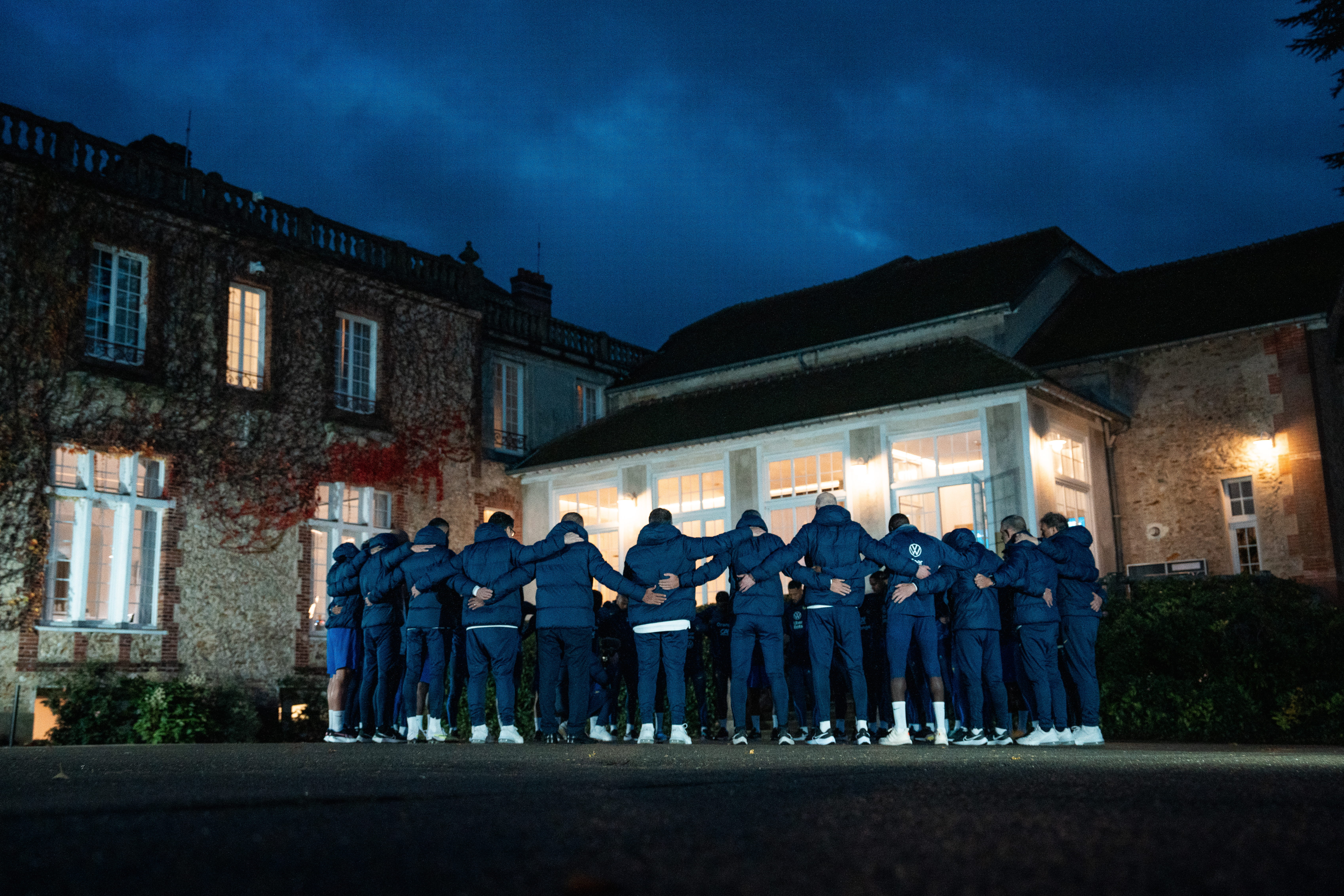 Le 13 novembre 2023 lors d'un rassemblement à Clairefontaine, les Bleus avaient observé un moment de recueillement en hommage aux victimes des attentats de 2015 (photo Simon MORCEL / FFF).