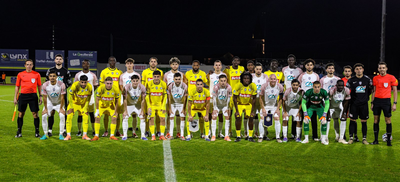 Trélissac FC (R1, en blanc) et Pau FC (L2, en jaune) la Coupe de France ensemble (Photo Sulyvan MANFROI / APL / FFF)