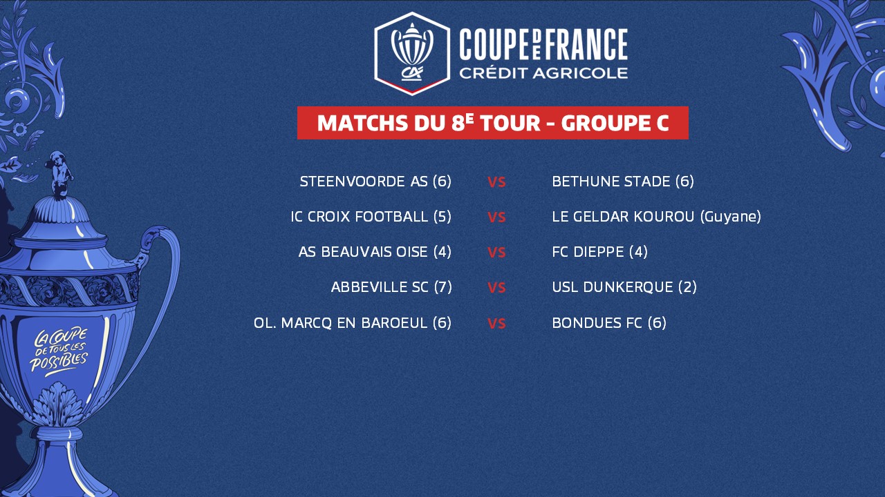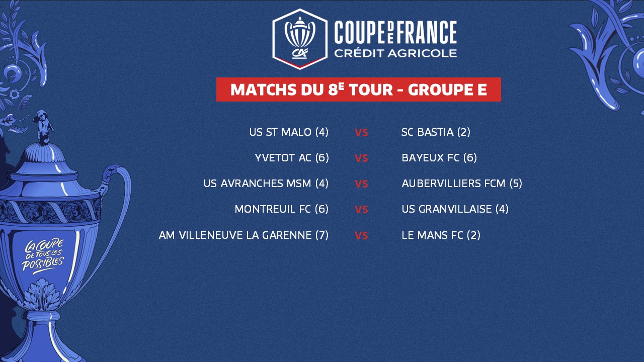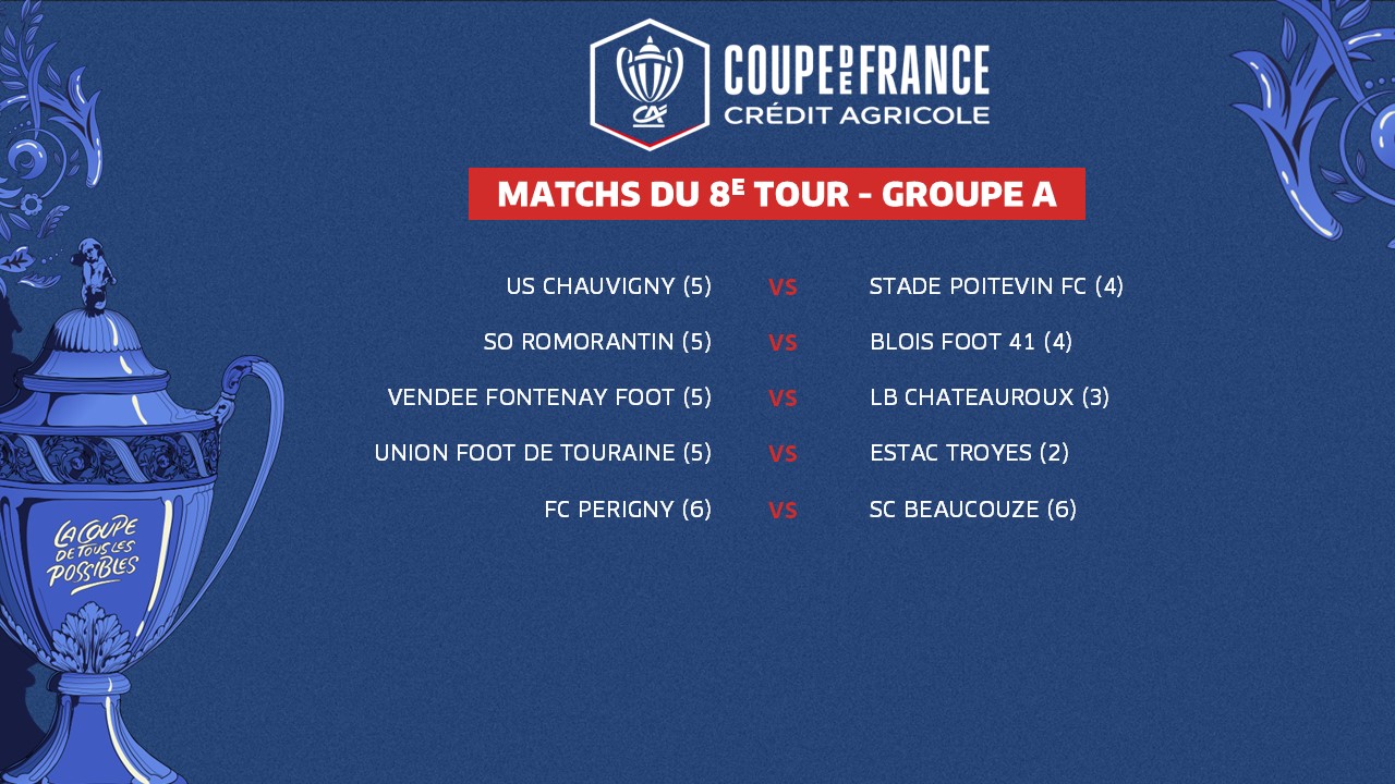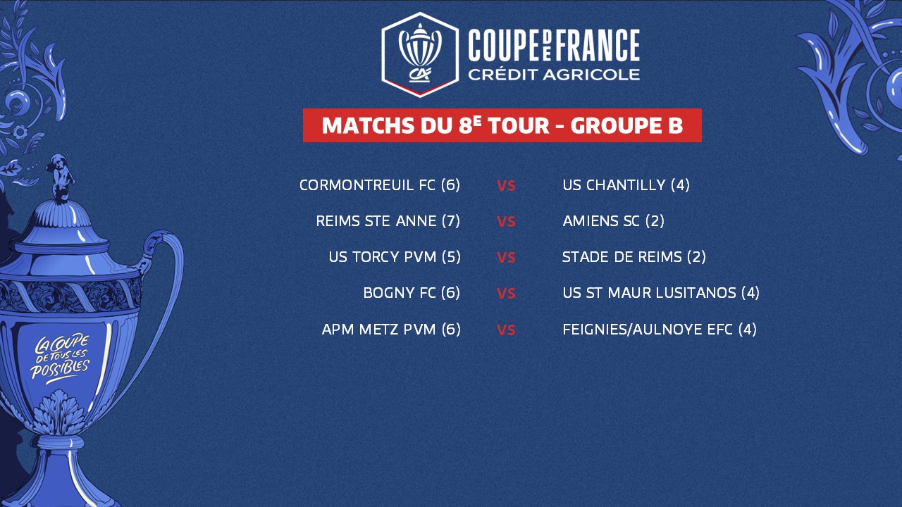 Le 7e tour de la Coupe de France Crédit Agricole, marqué par l'entrée en lice des clubs de Ligue 2 BKT, a rendu son verdict ce week-end. Ses résultats ont, du même coup, déterminé les rencontres du tour suivant. Voici le programme de ce 8e tour, groupe par groupe.