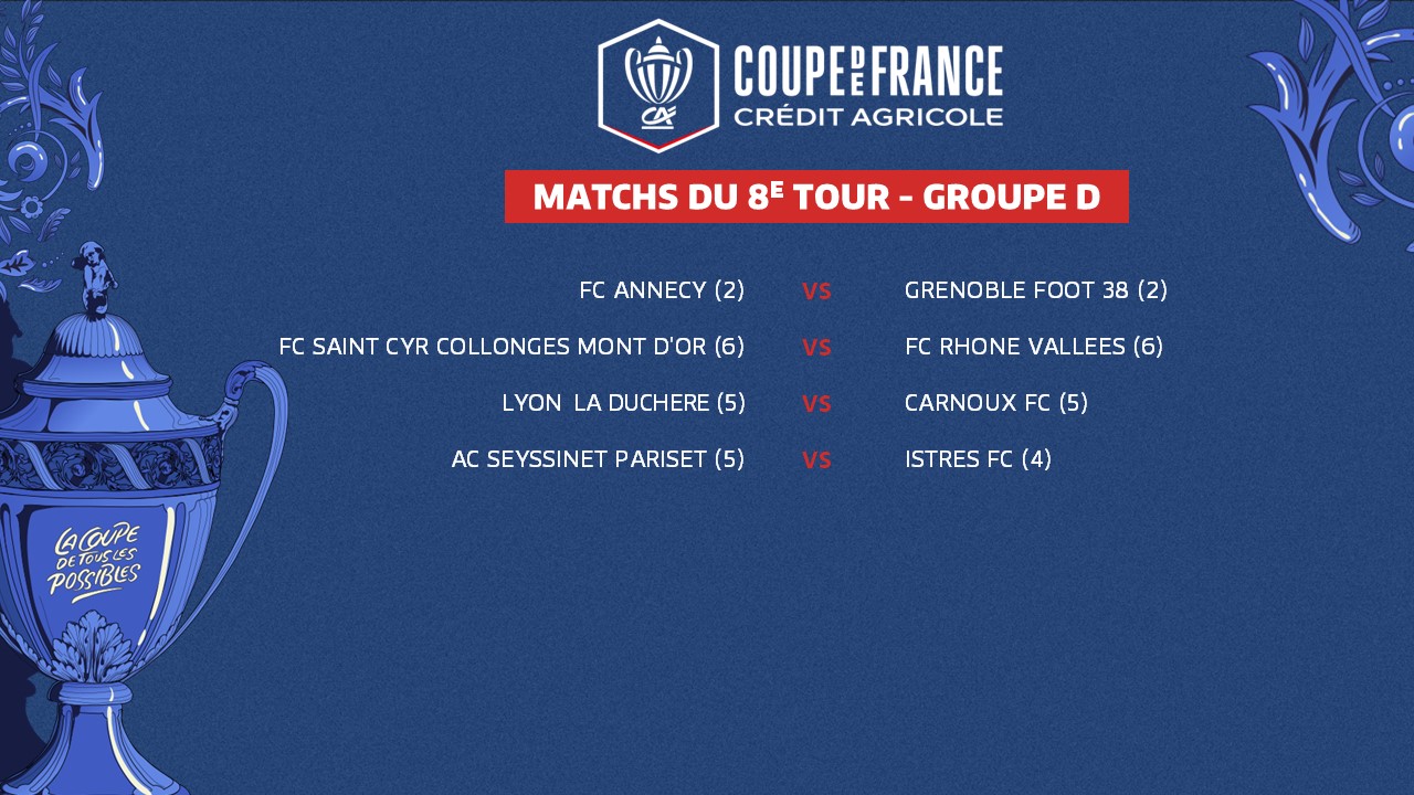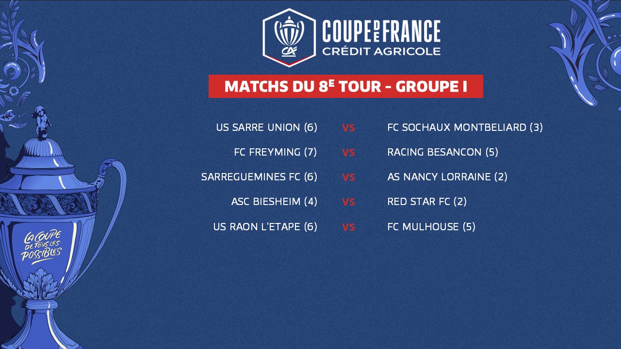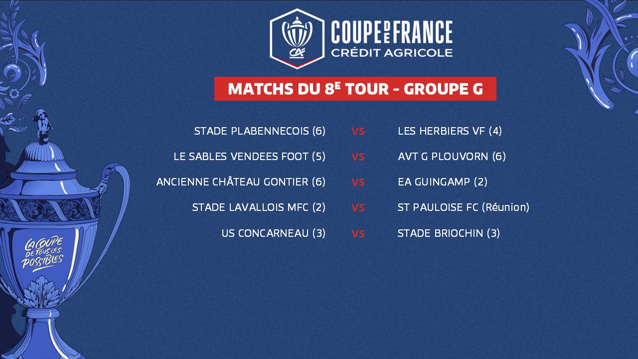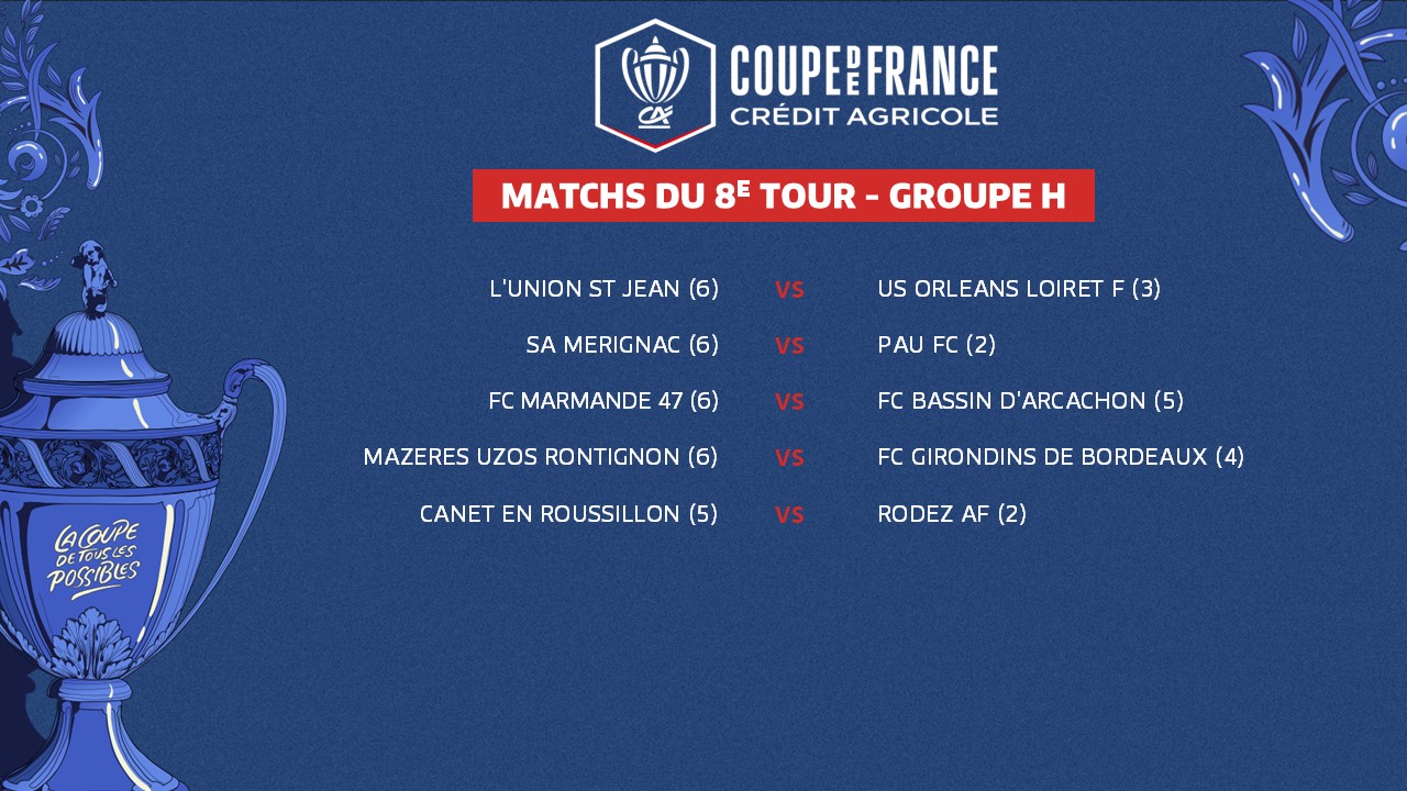 Le 7e tour de la Coupe de France Crédit Agricole, marqué par l'entrée en lice des clubs de Ligue 2 BKT, a rendu son verdict ce week-end. Ses résultats ont, du même coup, déterminé les rencontres du tour suivant. Voici le programme de ce 8e tour, groupe par groupe.