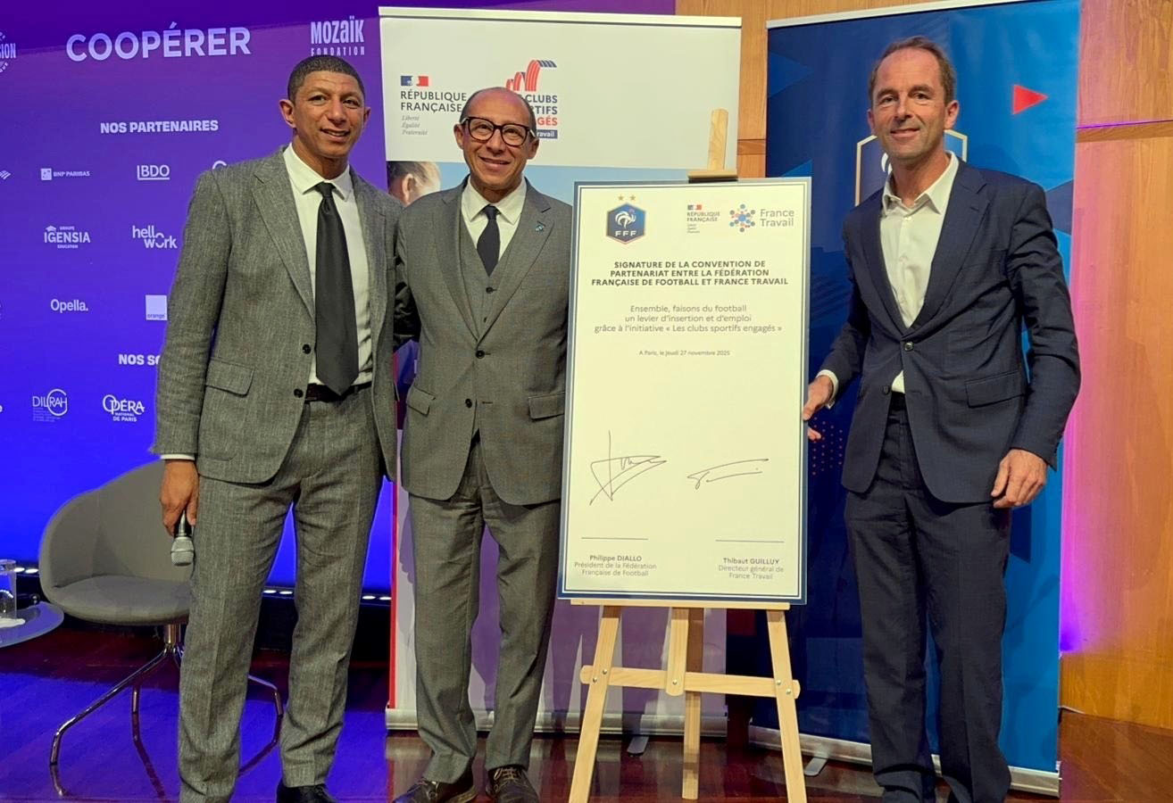 La Fédération Française de Football et France Travail ont signé jeudi 27 novembre une convention de partenariat visant à favoriser l'insertion professionnelle des licenciés.