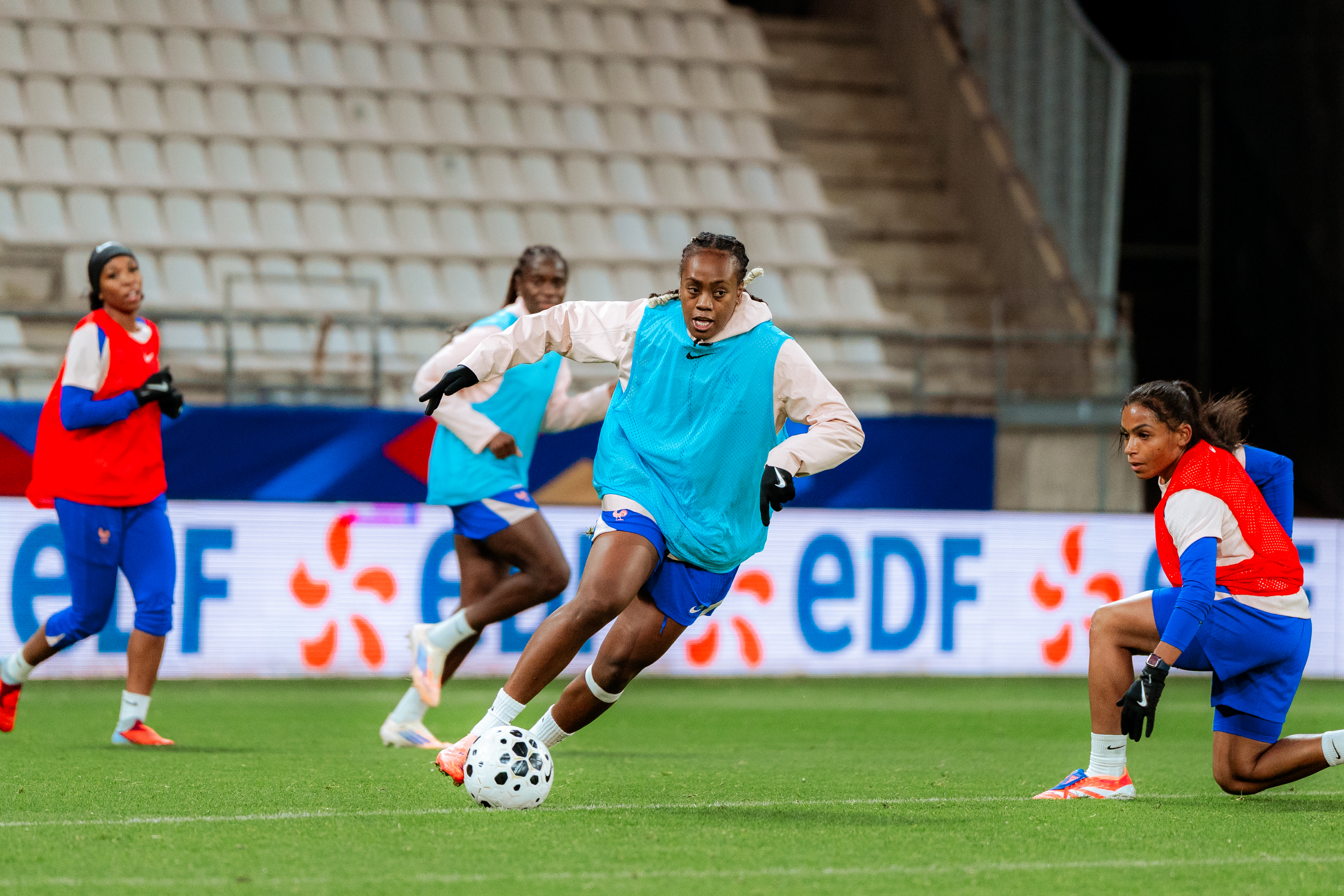 Melvine Malard lors de l'entraînement de veille de match, jeudi soir, au stade Auguste-Delaune (photo Zoé JEULIN / FFF).