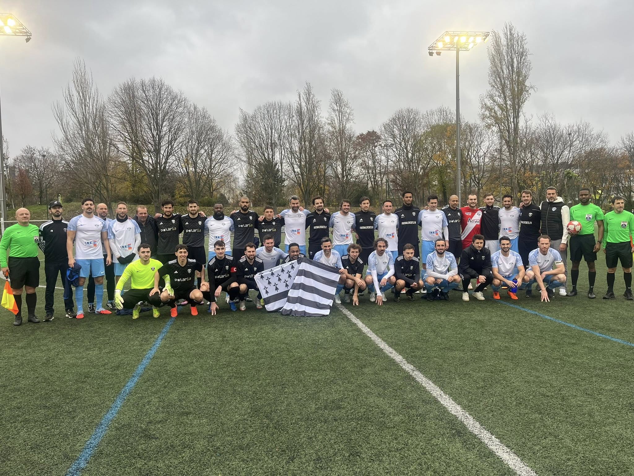 Les joueurs des Bretons de Paris et l'AS CTE Orvault réunis avant le 16e de finale remporté par les joueurs de la capitale (photo Facebook / AS CTE ORVAULT).