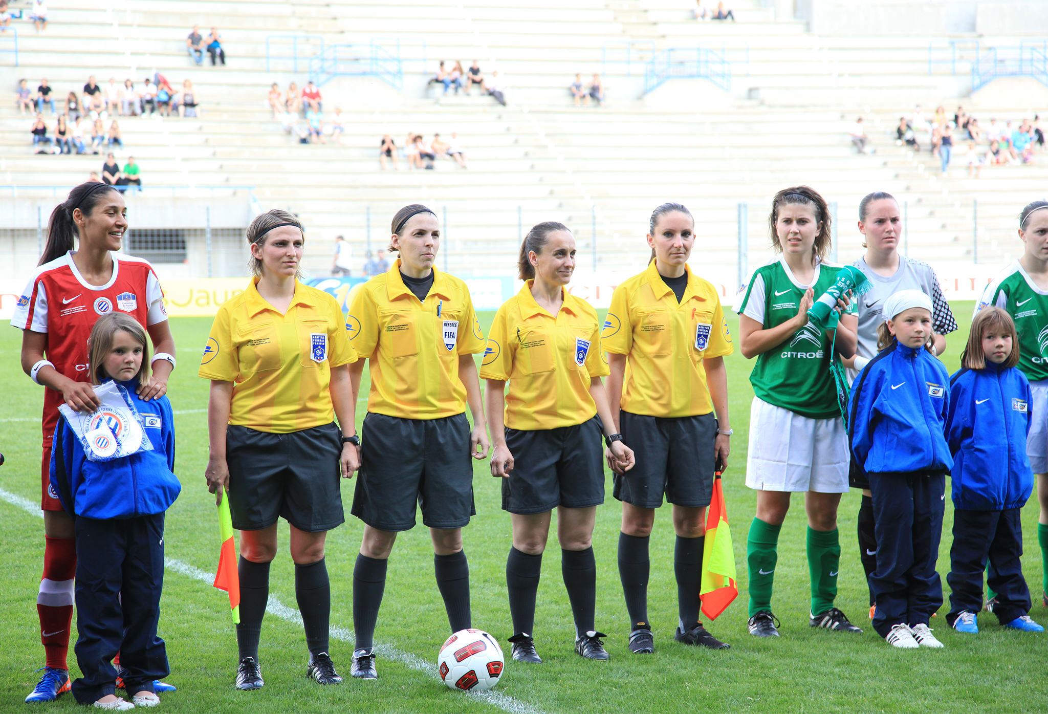21 mai 2011 : première finale pour Stéphanie Frappart, aux commandes de la finale du Challenge de France féminin (désormais Coupe de France féminine) entre le Montpellier HSC et l’AS Saint-Étienne. (Photo FFF)