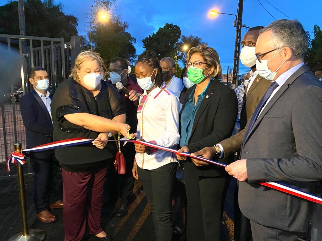 En 2021, Oriane Jean-François a inauguré un complexe sportif portant son nom à Saint-Laurent du Maroni, sa ville d'origine (photo Marie Laure Phinera Horth / Facebook).