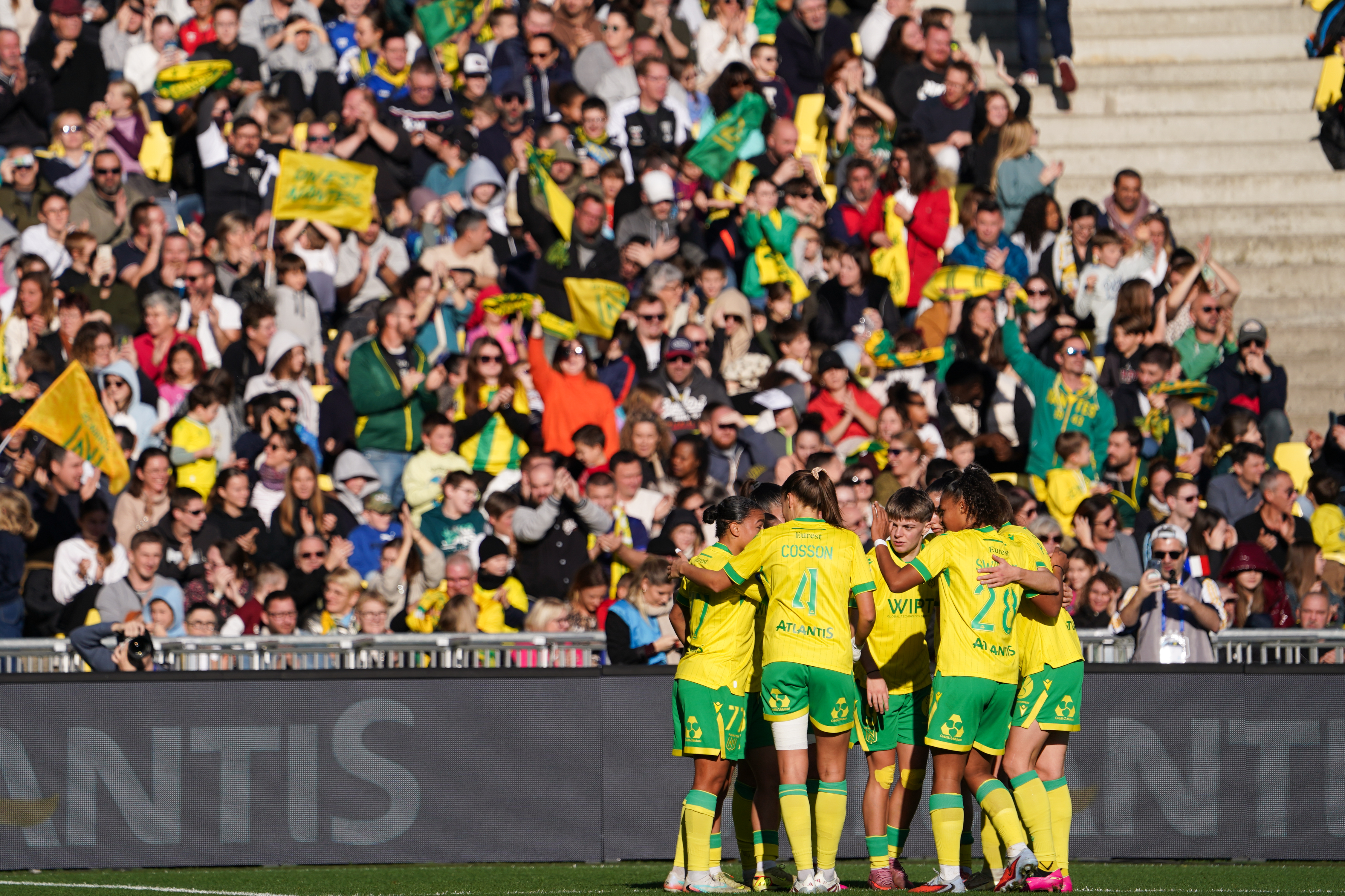 Une vague jaune a déferlé sur l’Arkema Première Ligue. Le 14 décembre dernier, 17 491 spectateurs ont garni les travées de la Beaujoire pour assister à la victoire du FC Nantes sur l’Olympique de Marseille (3-0), la sixième meilleure affluence de l’histoire du championnat. Ils étaient quatre mille de plus que pour la réception du Paris FC (3-1) quelques mois plus tôt, pour laquelle 13 454 personnes avaient fait le déplacement, le 4 octobre 2025. « Tout le monde en profite, joueuses et staff, assure Nicolas Chabot, le coach nantais. Je conçois le football comme un partage d’émotions, un spectacle à faire vivre. Plus tu as la chance de le faire vivre devant du monde, plus le partage est intéressant. Si tu joues devant 50 personnes, ce n’est pas pareil. »