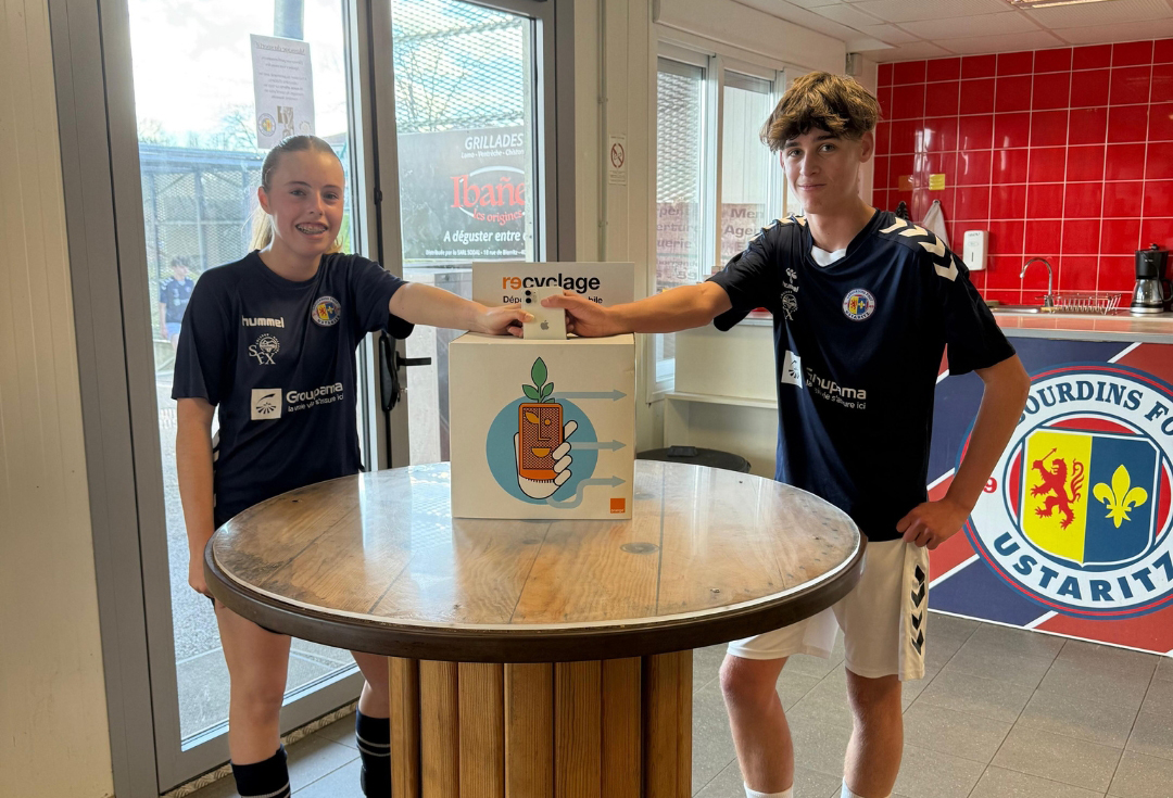 La collecte de matériel électronique à recycler est l’une des autres actions menées par le club avec Orange (photo Labourdins Foot d’Ustaritz).