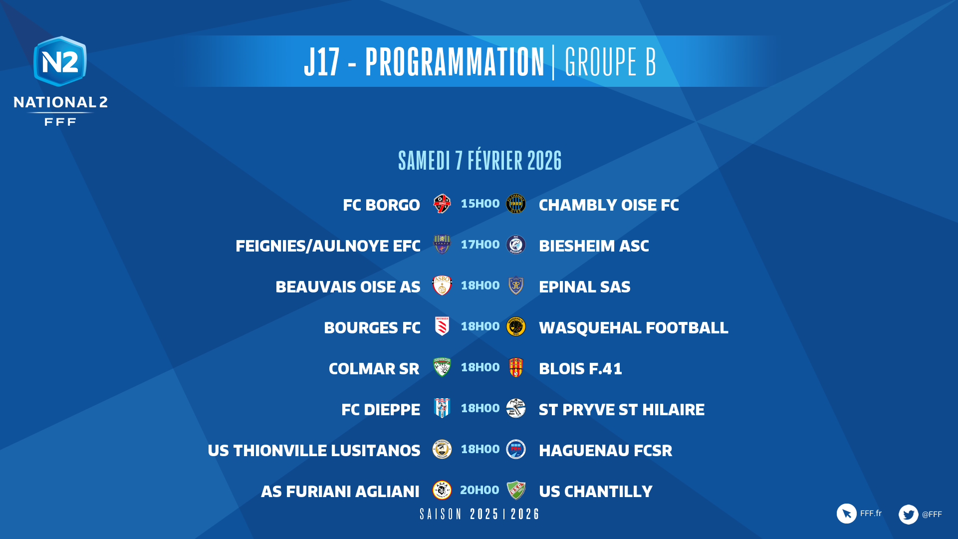 Les vingt-et-une autres rencontres se joueront le samedi 7 février, dès 15h00.