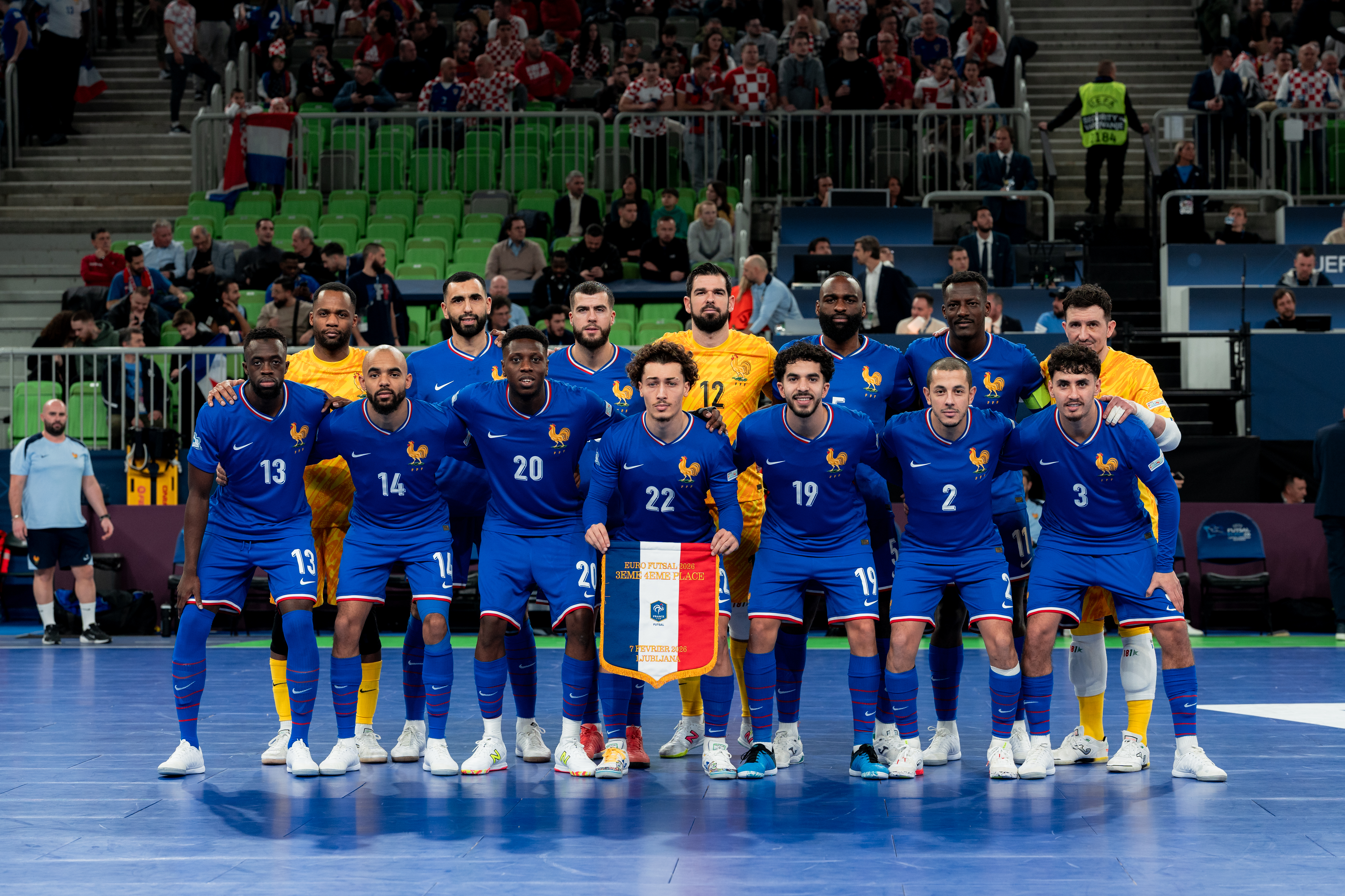 Contre vents et marées, les Bleus ont lutté comme jamais. Dans une Arena Stozice (Ljubljana) hostile, acquise à la cause de la Croatie soutenue par plus de 3 000 supporters, ils ont mis tout ce qu'ils avaient. Malgré son fort caractère, à l'image de l'égalisation de Souheil Mouhoudine à sept secondes de la fin, la médaille de bronze a encore échappé à l'Équipe de France Futsal, privée de podium à l'Euro 2026 au terme de la séance de tirs au but (5-5, 5 tab à 6).