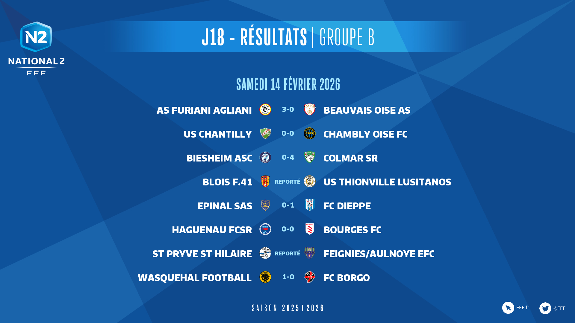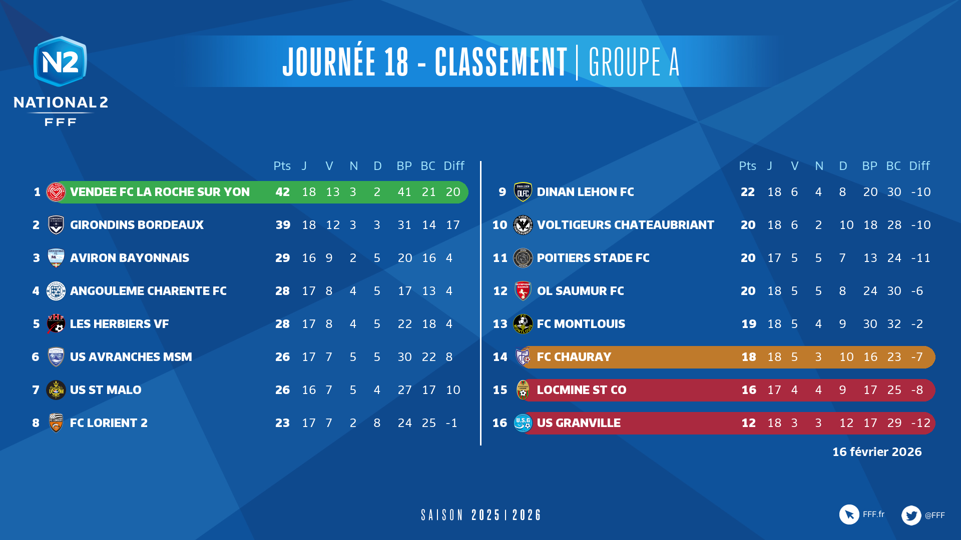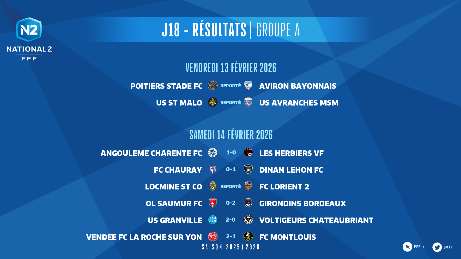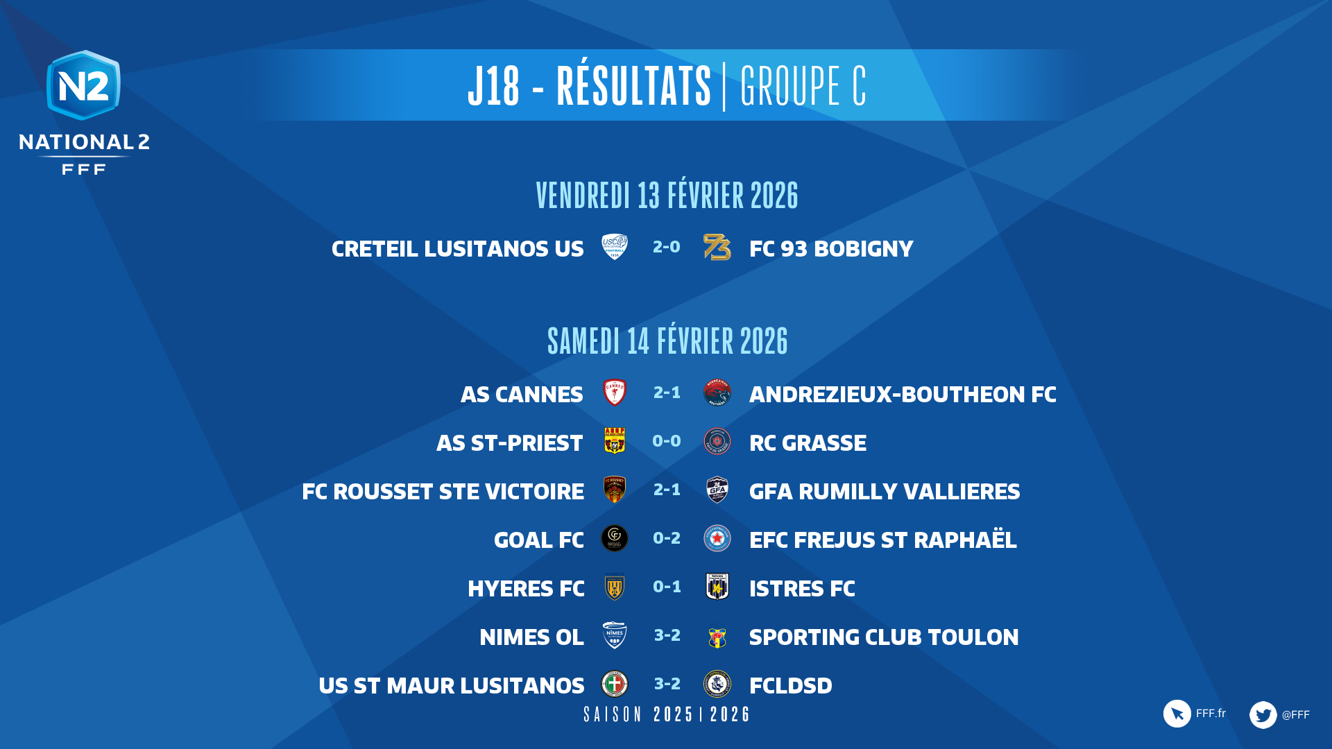 Le résumé de la 18e journée du championnat National 2, disputée les vendredi 13 et samedi 14 février.