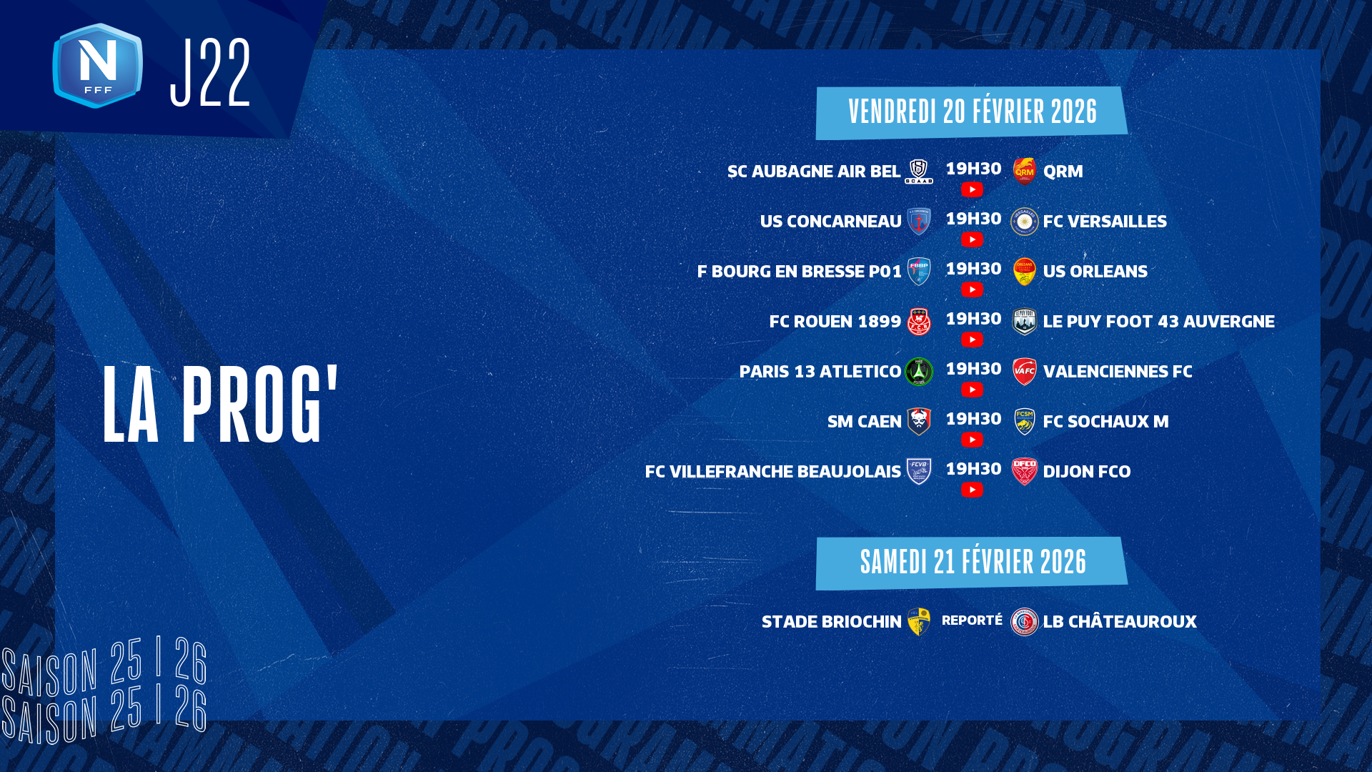 Les sept autres affiches seront à suivre ce vendredi 20 février, à 19h30, sur la chaîne YouTube du championnat.