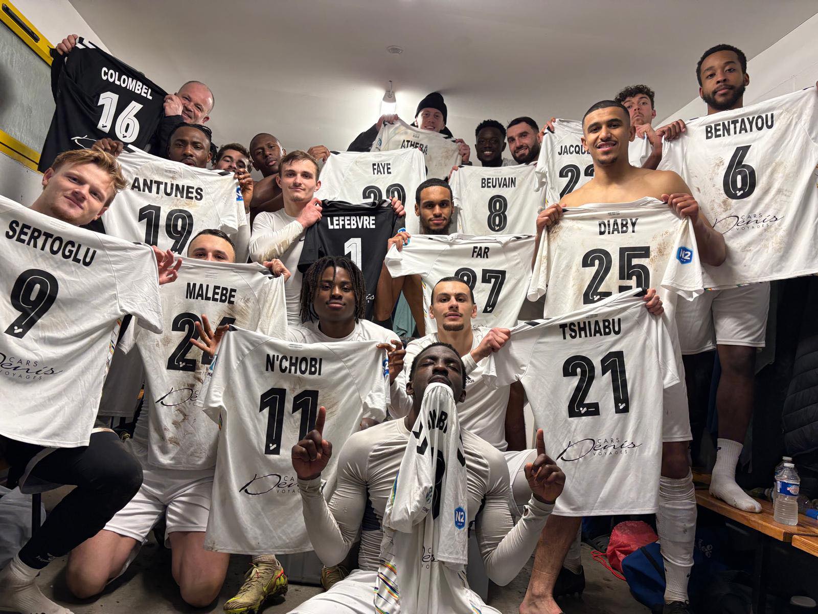 Les Dieppois fêtent leur succès à Wasquehal (photo Facebook / Dieppe FC).