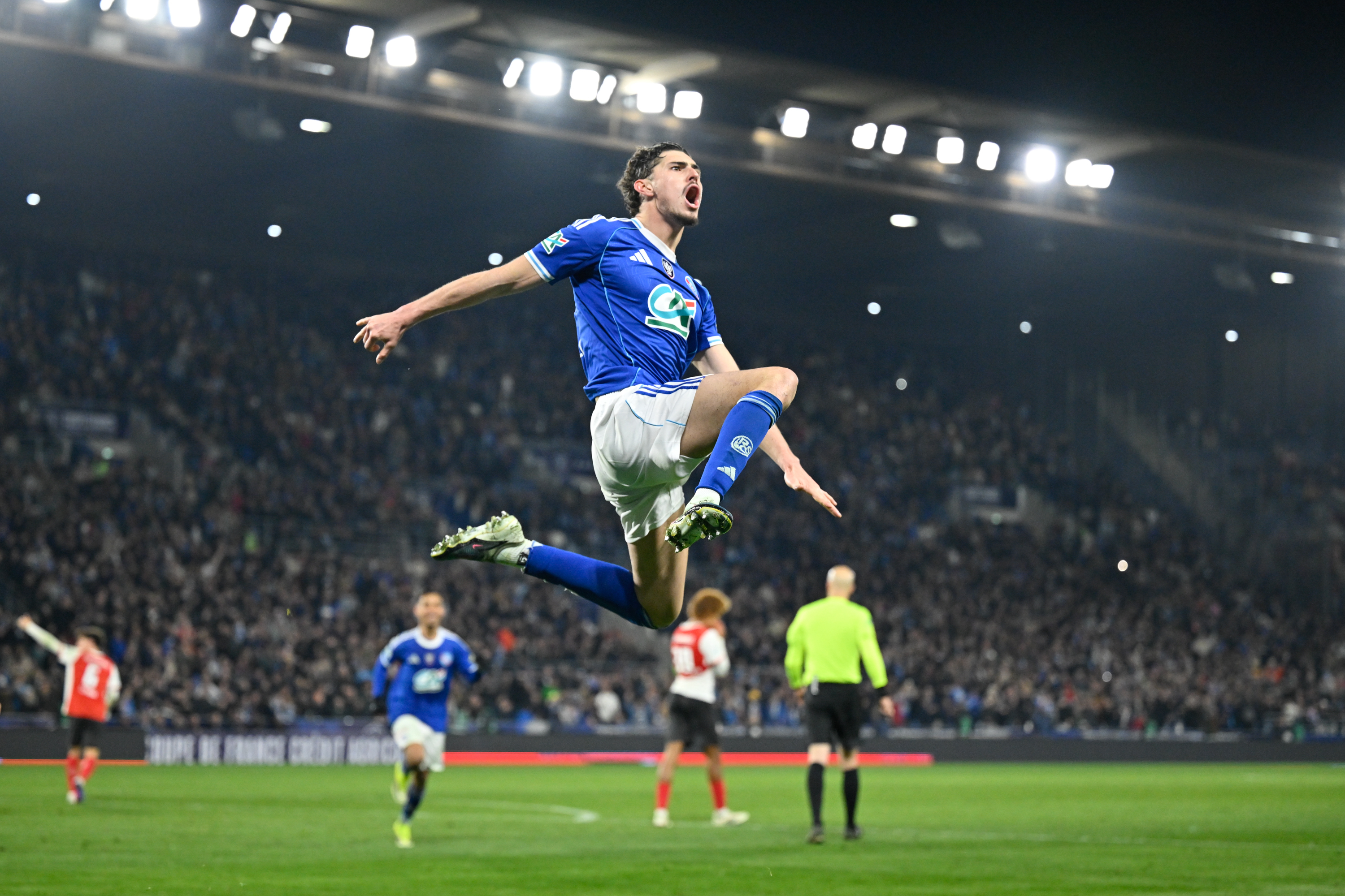Mardi, les Rémois ont été très prudents en première période et se sont procurés une belle occasion à l’heure de jeu avant que Strasbourg ne concrétise sa nette domination par deux penalties dans les dix dernières minutes, par Joaquin Panichelli (83e) puis Julio Enciso (87e). Mais Reims a fait honneur à la Ligue 2 en réduisant le score dans le temps additionnel par Patrick Zabi (90e+4). Le tableau final ne comporte donc que des clubs de l'élite. En demi-finales, dont le tirage a eu lieu en début de soirée, Lens recevra Toulouse et Strasbourg accueillera Nice, le mercredi 22 avril. La finale se jouera le samedi 23 mai.