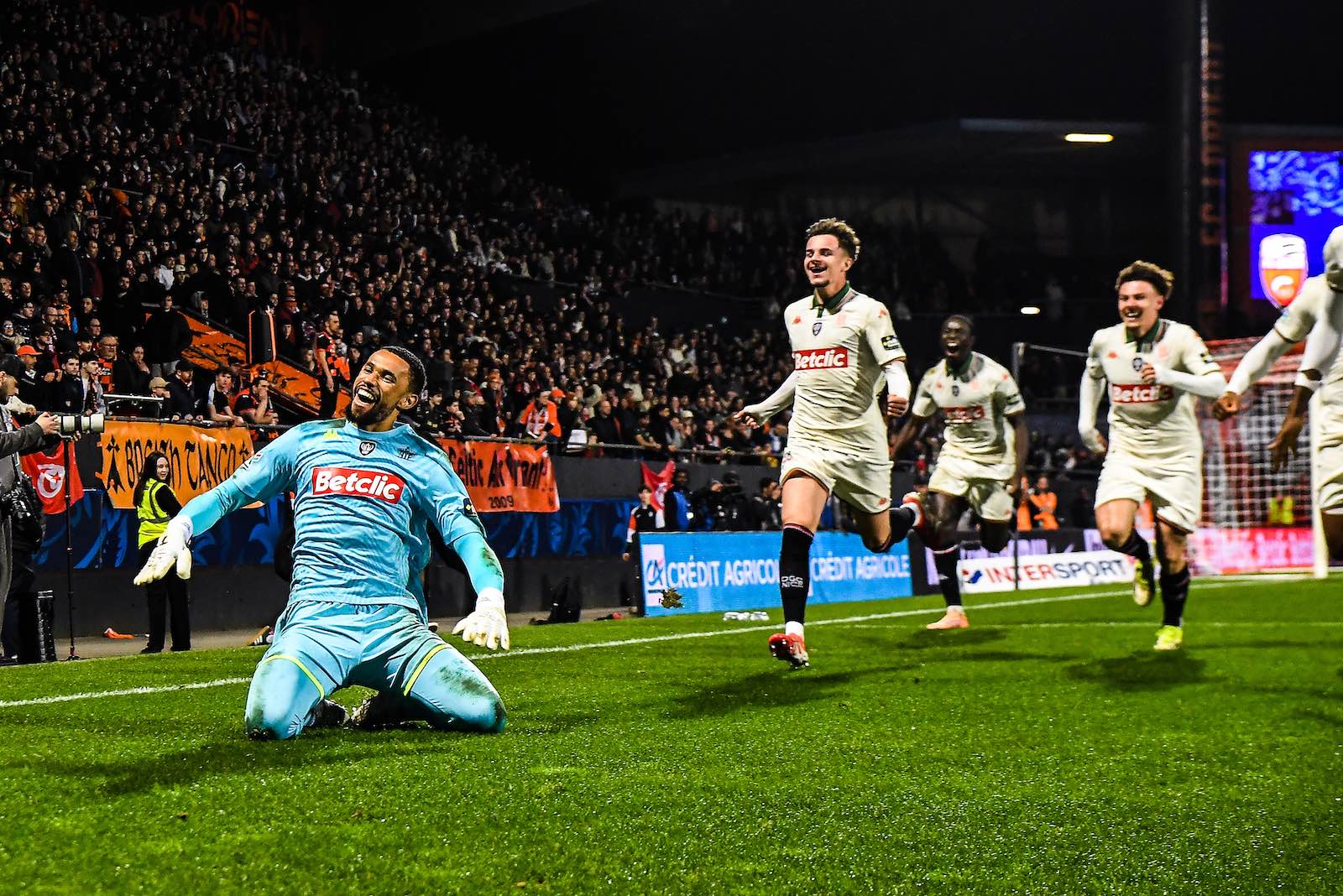 Le gardien niçois Yehvann Diouf a arrêté deux tirs au but et qualifié Nice face à Lorient (photo Emilian BALDOW / ICON SPORT)