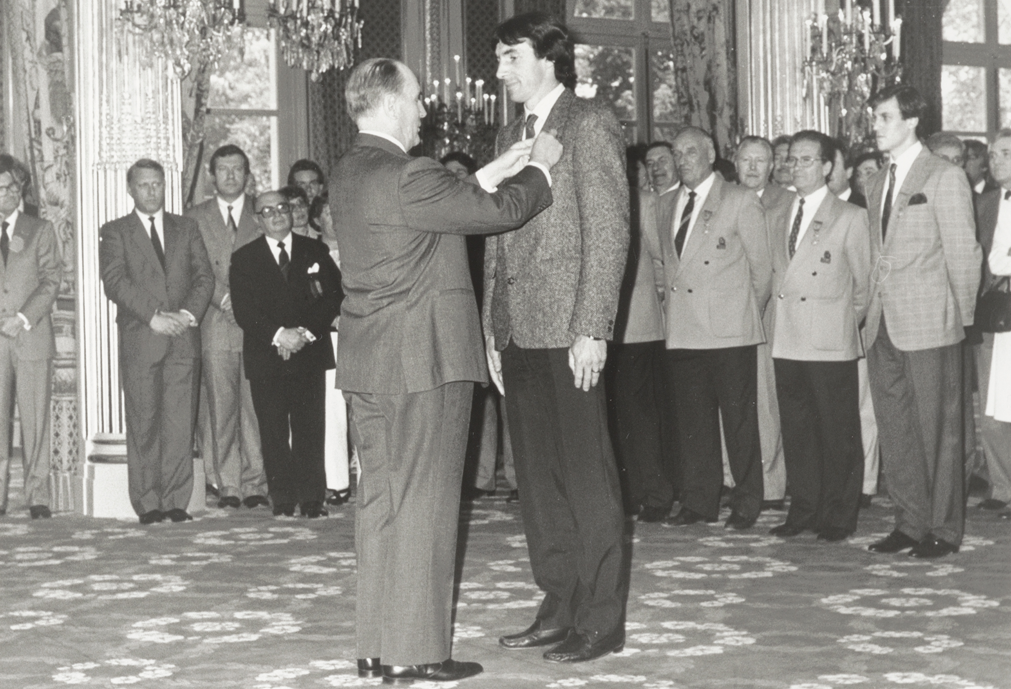 29 avril 1985 : comme tous les champions d'Europe 1984, Maxime Bossis est décoré des insignes de chevalier de la Légion d'honneur par le Président François Mitterrand au Palais de l'Elysée (photo archives FFF).