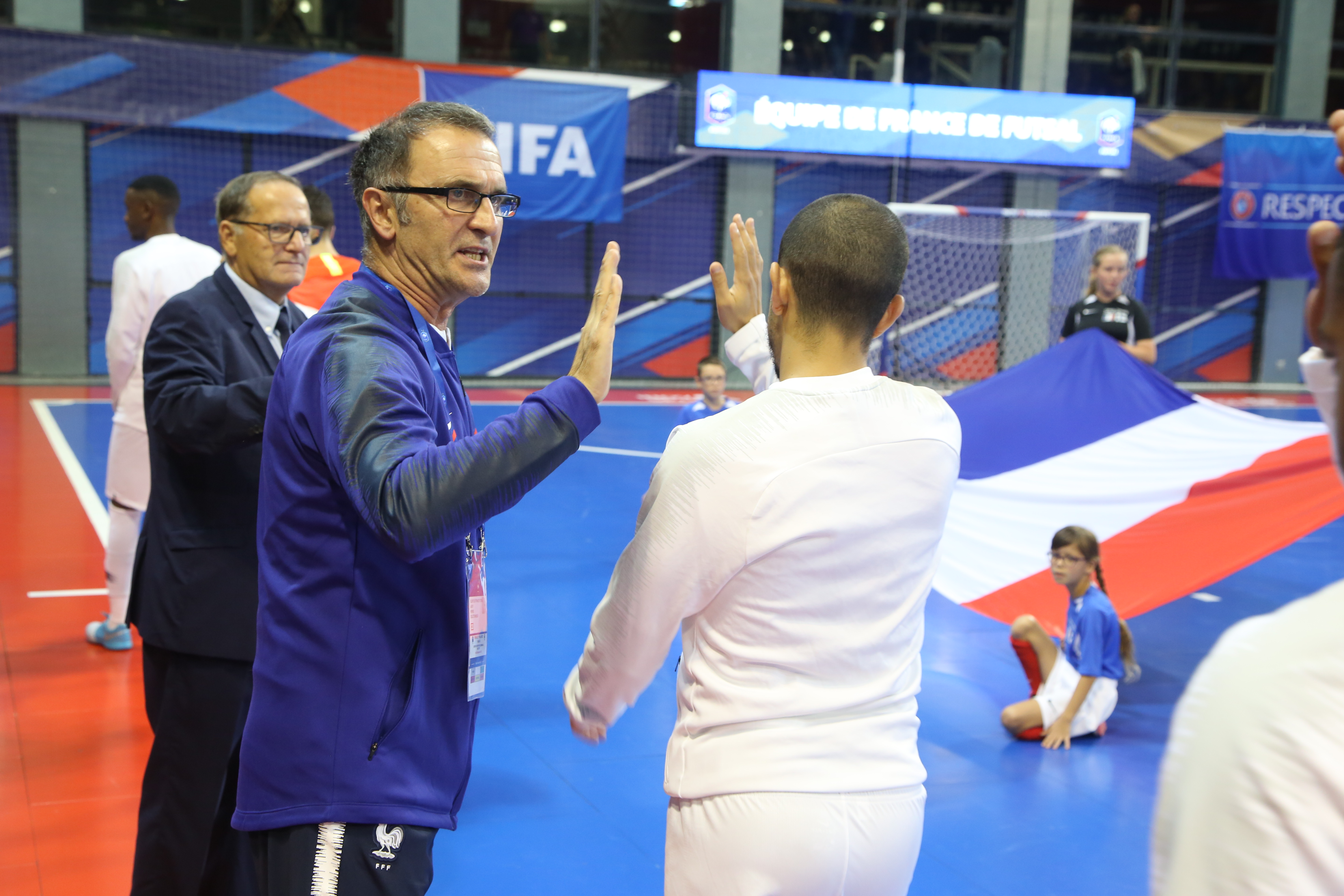 Après presqu'un quart de siècle à la tête des Bleus qu’il a conduit de l’anonymat à une qualification pour une première phase finale internationale, l’Euro 2018, Pierre Jacky (photo ci-dessus lors d'un amical en septembre 2019), grand artisan de l’essor de la discipline dans l’hexagone conserve des missions à la DTN. L’Alsacien de 61 ans devient responsable de l’ensemble des sélections futsal en plus de ses prérogatives de développement et de formation dans la discipline.