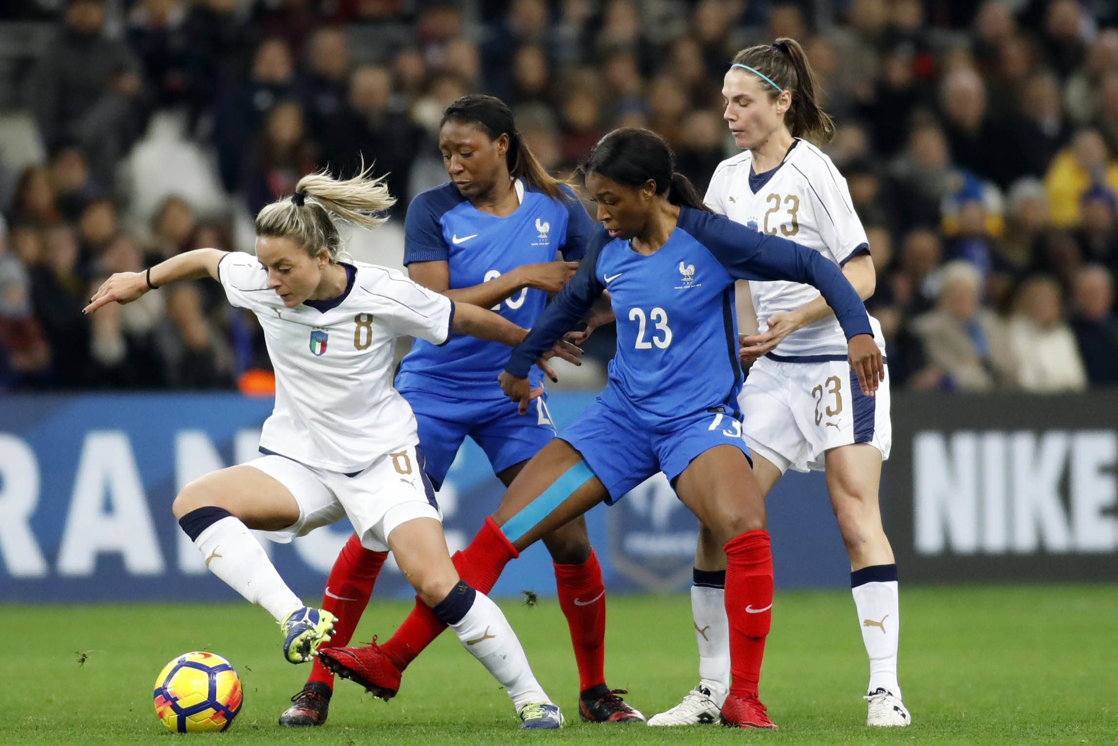 Une image du dernier France-Italie, le 20 janvier 2018 à Marseille (1-1), en amical. Kadidiatou Diani et Grace Geyoro au cœur de la défense italienne (photo Guillaume RUOPOLLO/ICON SPORT).